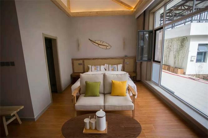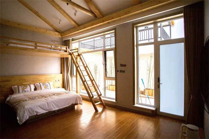 房间风格多样,禅意房、轻奢套房、主题亲子房,附带室内阳光的小院。