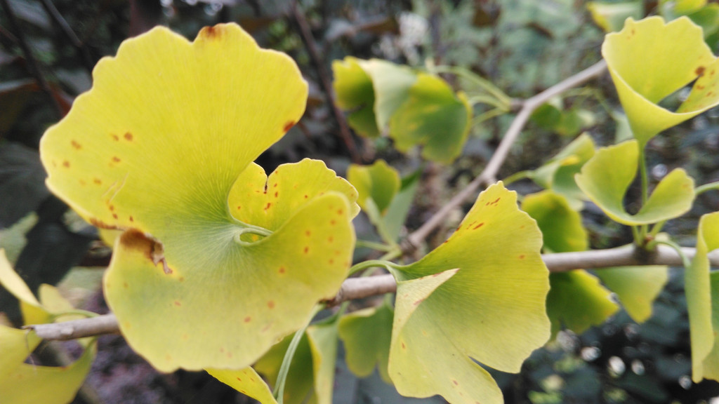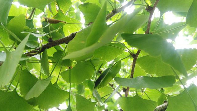 此时的银杏叶,大多数依然青翠,间或有几株颜色淡黄的夹杂其间,却也别有风情。