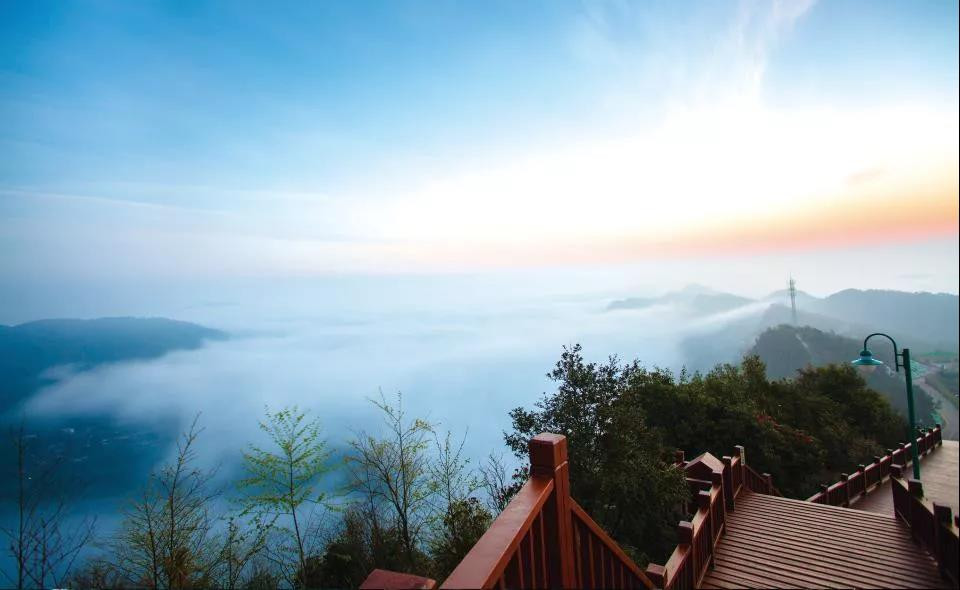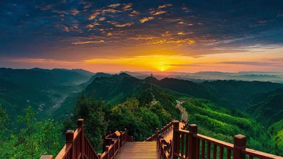 傍晚,晚霞满天,赏景的游客游兴不减,不时传来欢声笑语。远方的竹林深处,竹影婆娑,炊烟袅袅。