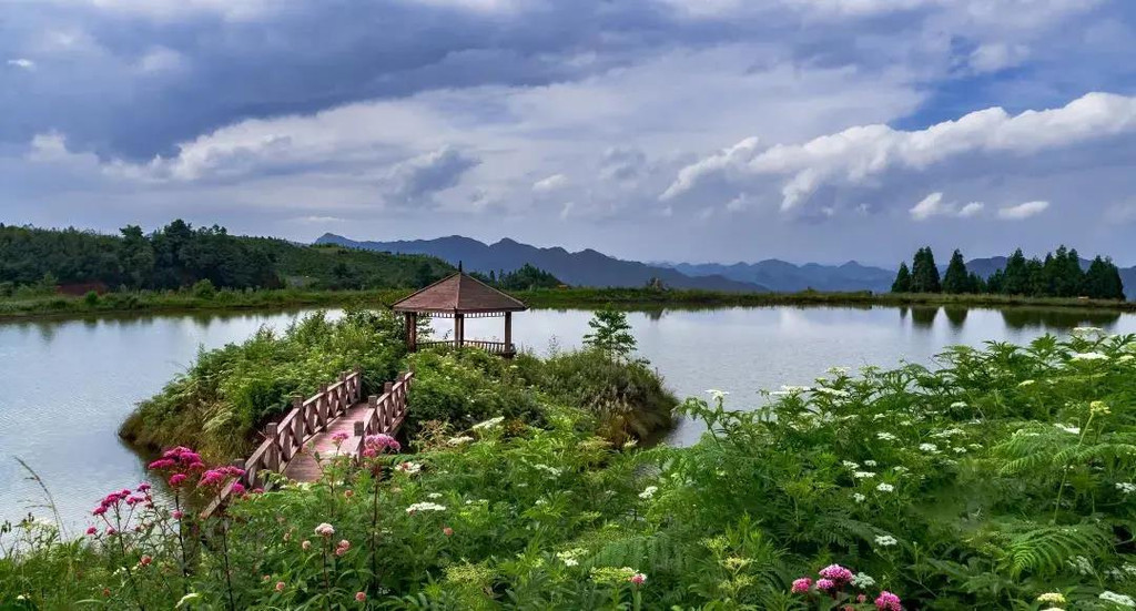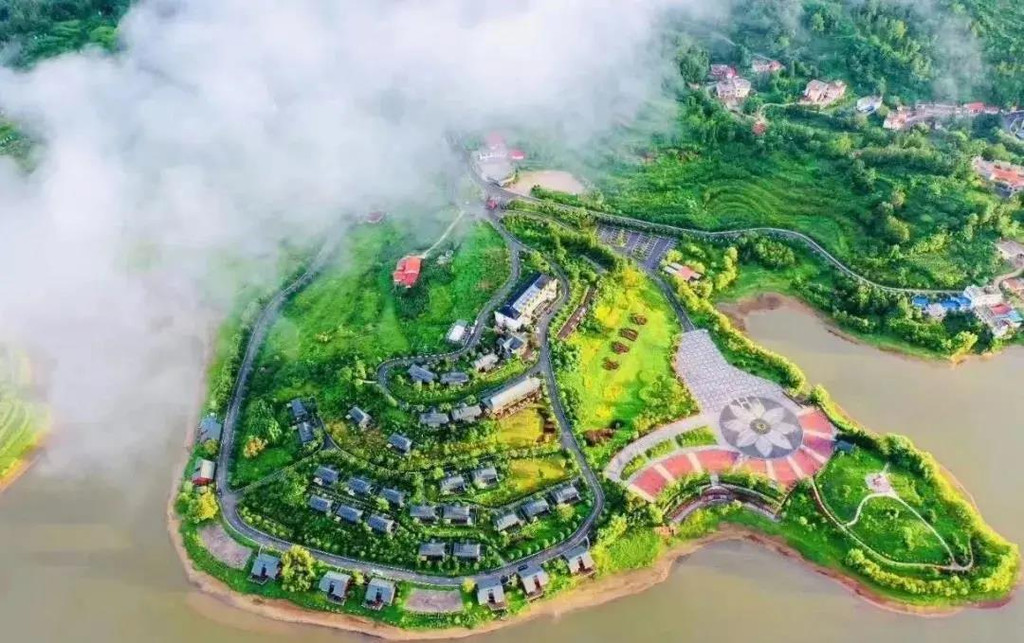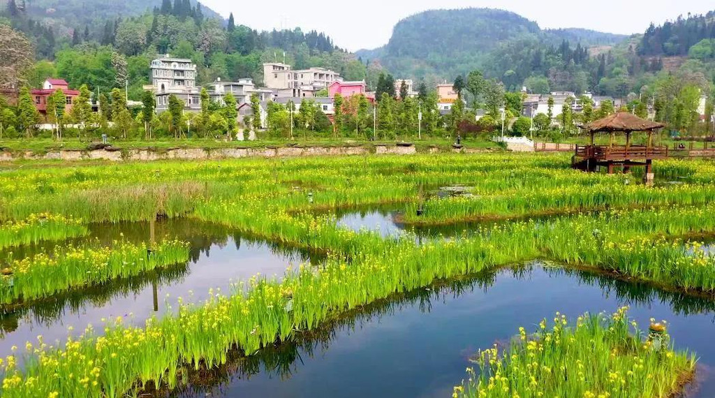 四周的山上,满目青翠,绿意盎然,若隐若现的氤氲在晨雾里。“莲池九峰”依山傍水而建,水上八卦图四面有9座大小的山峰环绕,故名“莲池九峰”。莲池九峰、水上八卦图、刺梨展示中心、自然村落完美融合。登高俯瞰,青山绿水相间,一幅瑰丽绝美的山水画卷呈现眼前。