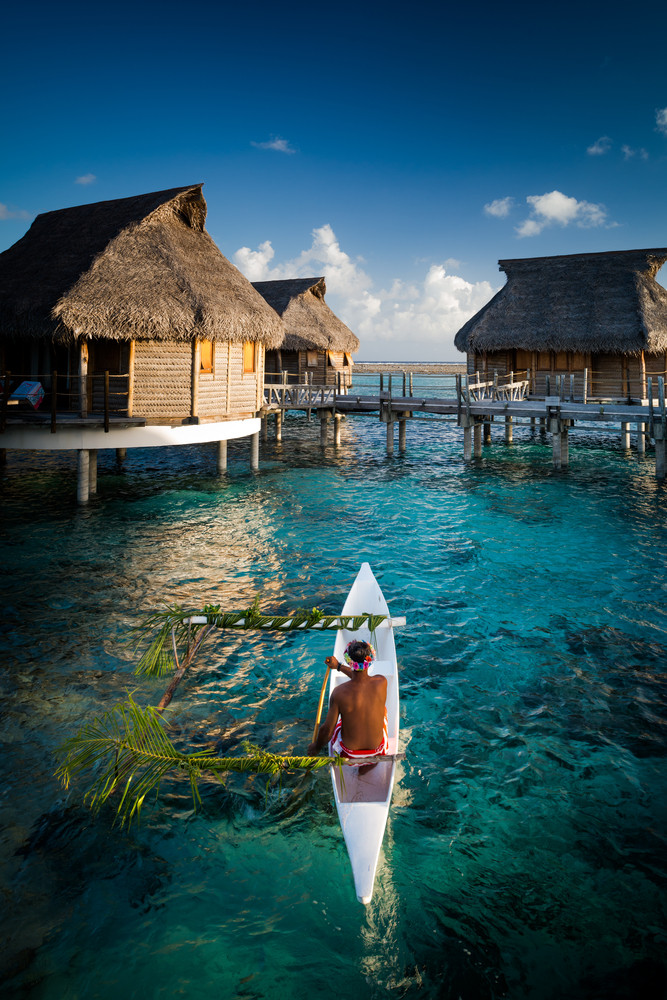 早晨当地人划着独木舟从海面而来,丰盛的早餐送到露台,这是只有在大溪地才有的体验!