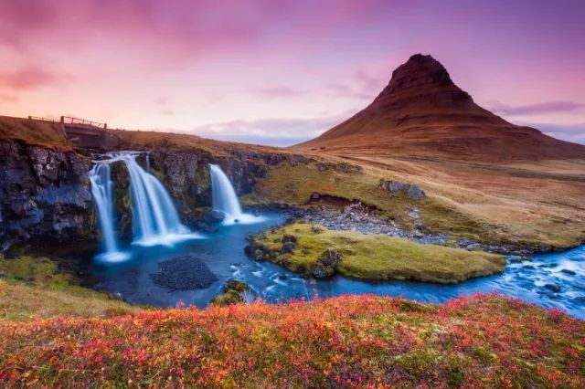 当新落的初雪和秋的金黄、常绿的苔藓与艳红的岩浆交织在一起时,呈现的是最独一无二的色彩组合。冰岛的秋天不会叫你失望。