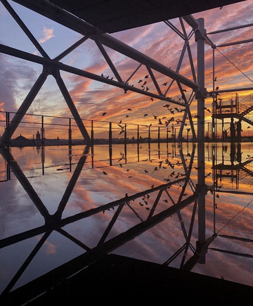 第七层设有观景平台,可以在此俯瞰巴黎全景,远眺蒙马特区和圣心大教堂。除此之外博物馆顶层的餐厅Legeorges也是网红INS打卡热门地点,餐厅设计以喷气式飞机为设计灵感,仿佛踏上了库布里克2001太空漫游的电影场景。