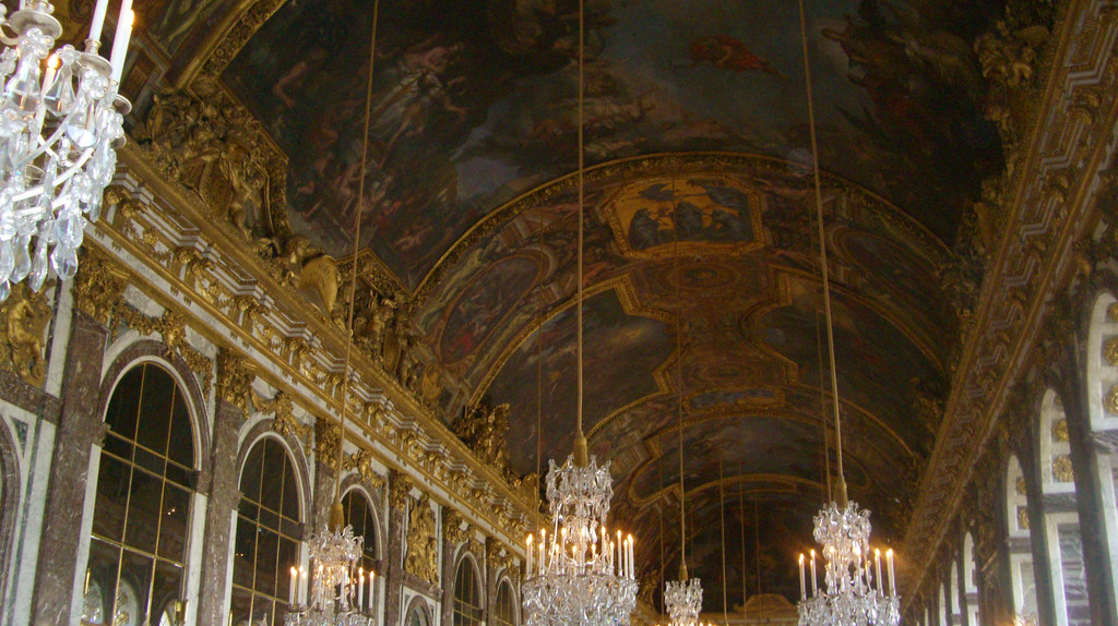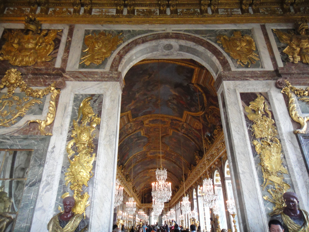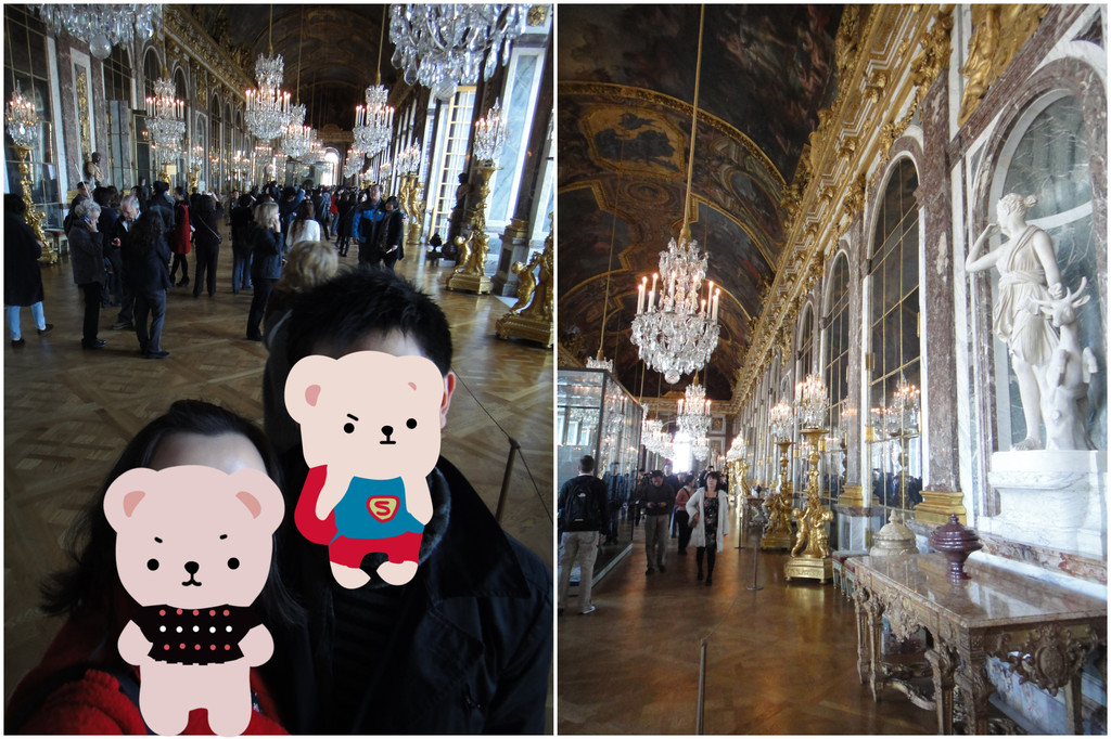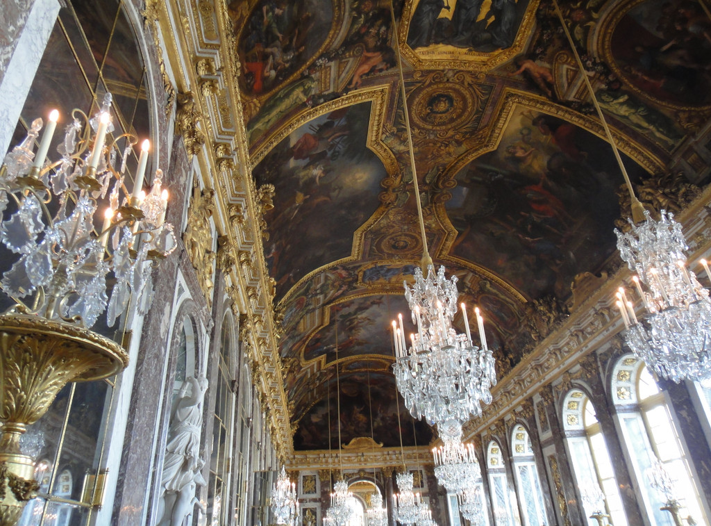 下图摄于凡尔赛宫最出名的镜厅,以17面由483块镜片组成的落地镜得名,