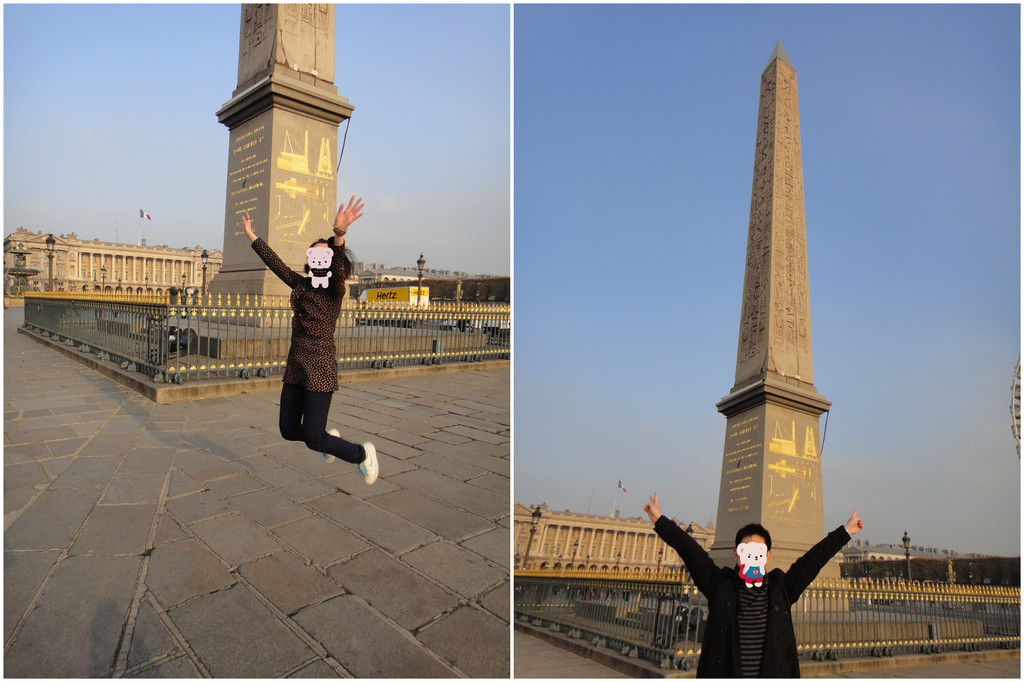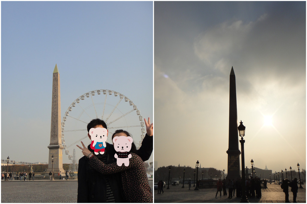 卢浮宫行程完毕后,旅行团队大巴直接开往【协和广场】附近(其实自由行的话,两地相距地铁2站20分钟可达)协和广场有一座:埃及方尖碑,也称克娄巴特拉方尖碑(克娄巴特拉就是征服了凯撒的埃及艳后),原供于埃及卢克索神庙前,23米高,230吨重,据说从埃及流落到巴黎、纽约和伦敦各一座。霸道的丛林法则,落后就无法保护国家免于掠夺