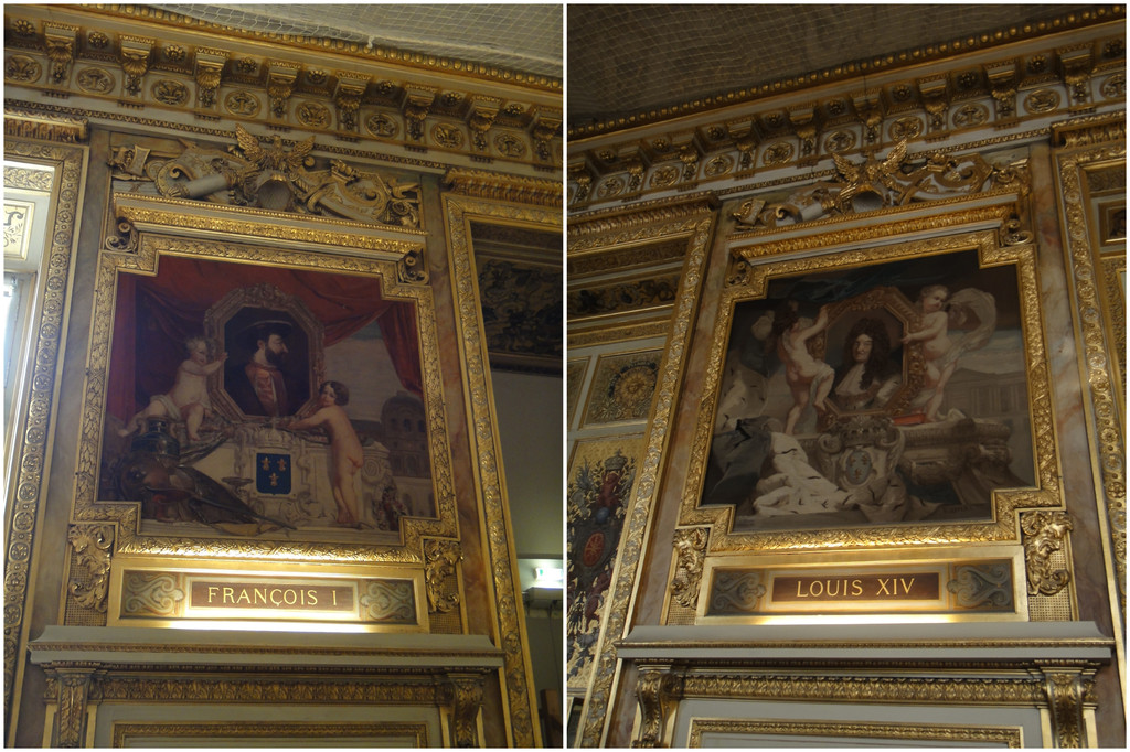 位列珍宝厅的法国国王中楼主最崇拜的两位:“弗朗索瓦一世(左侧),波旁王朝第九位国王,第一位文艺复兴的君主,最受爱戴的法兰西国王之一,他让法国繁荣的文化达到了一个高潮” + “路易十四(右侧),法国武帝,一生经历遗产战争、法荷战争和大同盟战争,让法国海军舰队达到了空前绝后的巅峰,陆地和整个欧洲联军打成平手”