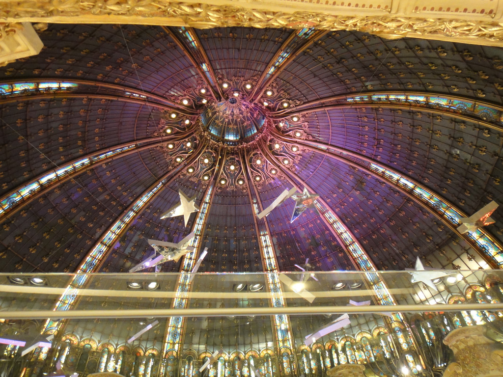 本次团游,没有时间脱团爬埃菲尔铁塔,晚上属于回市区自行活动时间,西欧的商场关门很早,楼主和老婆直接前往老佛爷购物,老佛爷标志性的屋顶地址:40 Boulevard Haussmann, 75009 Paris