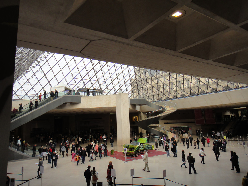 金字塔下,有地下层,进入卢浮宫的入口在地下一层