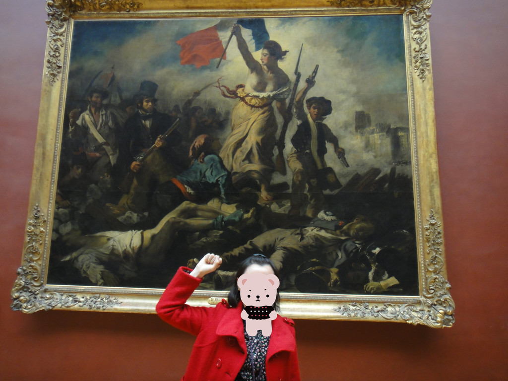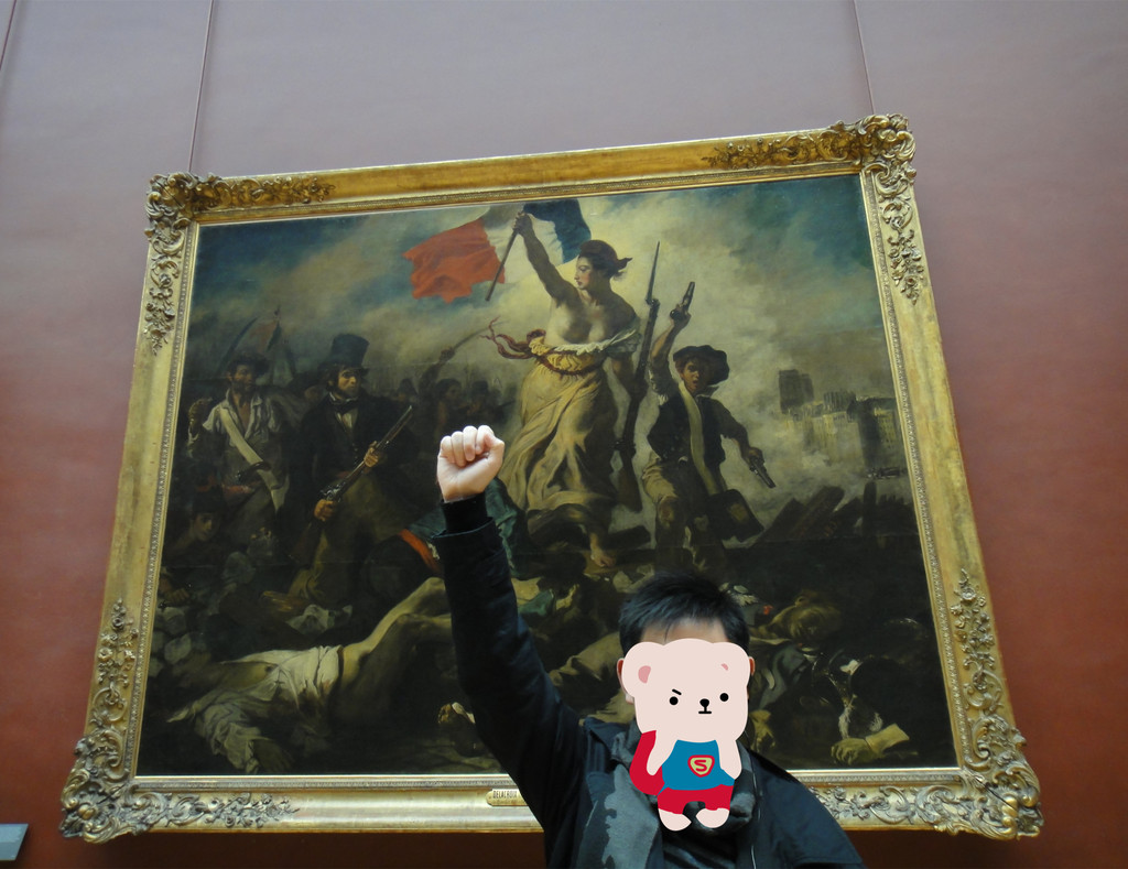 在德拉克洛瓦Delacroix于1831年所作的《自由引导人民》前,双双合影