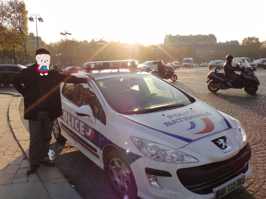 就近上一张实拍照与凯旋门边上的警车,来一张