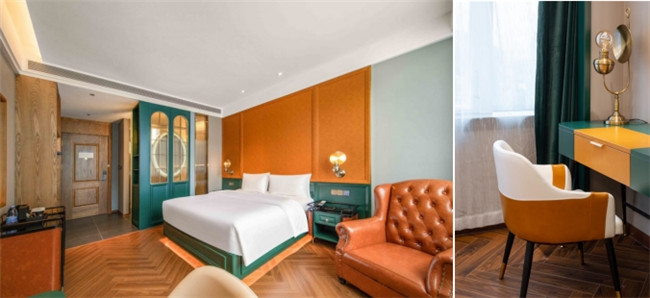 结束白天精彩,抵达休憩时刻,客房打造的「生活场」,令旅途品质抵达新的高度,初见是欧式拱窗、工业风灯饰等带来的穿越氛围,细探则能感受到皮革、木质、绒面的细腻触感,情怀与惬意共融,动静分离的贴心设置,休息区、办公区、娱乐区满足不同需求,足不出户即可醇享生活。