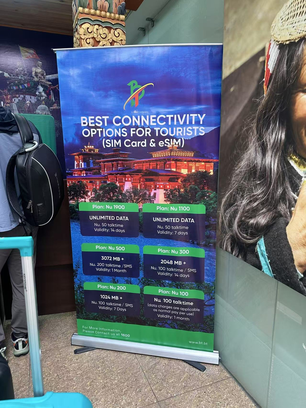 4、电话卡:在不丹使用中国移动电话卡上网每天封顶费用¥60元人民币。在不丹帕罗机场出来门口旁就有两家不丹的电话公司,选择你觉得合适的套餐就好。同行友人选择了300M流量5天勉强够用。我选择了200M流量的就不够用。
