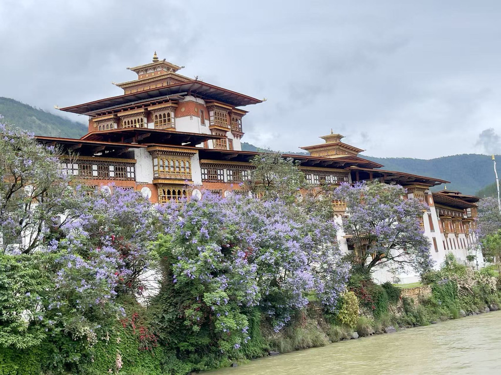吃过午饭后我们就前往普纳卡宗。普纳卡宗是不丹第二大宗堡,建于1637年,是不丹的著名景点之一。建在两条河流的汇集处,有一座全国最大的木质跨河大桥。如果有兴趣的话还能在这里漂流。