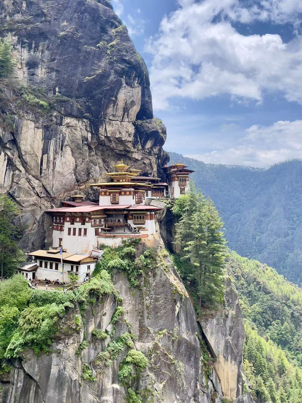 虎穴寺建于悬崖之上,是不丹最神圣的佛教寺庙之一,被誉为“不丹的象征”。相传公元8世纪莲花生大师骑着飞虎降临此地,在洞穴中冥想3个月,降伏恶魔并传播佛教。这座悬崖上的圣殿于1692年由不丹的统治者主持,围绕着莲花生大师的修行洞穴而建成。