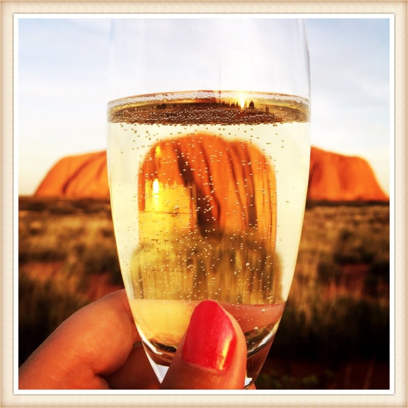 夕阳西下,我们手举香槟,在乌鲁鲁的大石头面前,庆祝自己终于来到了澳洲!