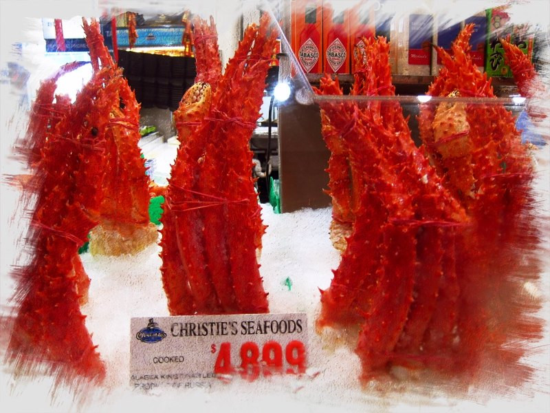 一路上有不少华人跟我问路,都是问悉尼鱼市。这里有不少华裔员工,有些能说一点中文,大多数有全中文标牌。游客可任意选择各种海鲜美食:大到帝王蟹、澳洲龙虾、鲍鱼,小到牡蛎、扇贝、寿司、炸鱼薯条、鱿鱼、海鲜沙拉……