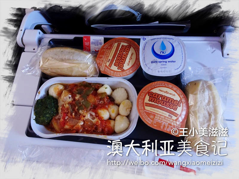 本来心想着坐廉航飞机是没有免费餐饮的,但谁知道维珍澳航不但有小点心、饮料,还品尝了一次味道不错的正餐。