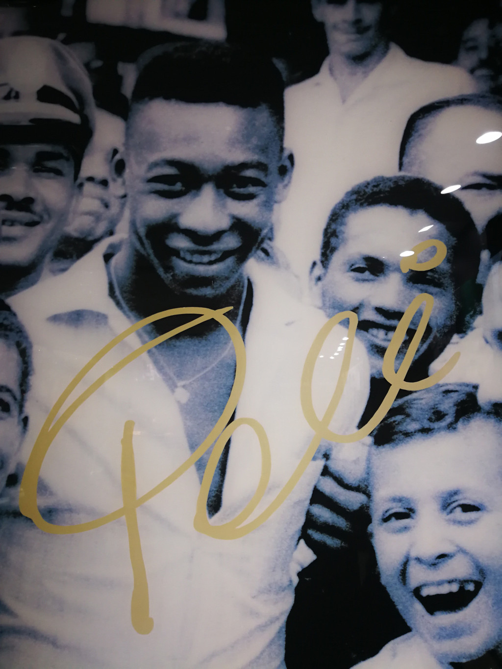 早餐后我们驱车前往圣保罗市以西70公里的港口城市桑托斯。城市很旧,历史遗迹突出。著名的桑托斯足球俱乐部就在这里,球王贝利早期在这里踢球。我们参观了该俱乐部的博物馆,馆内藏有各个时期比赛得冠的锦旗和奖杯,各个时期的队服和纪念品,我们到时正赶上场内有一场少年队的比赛,虽然是少年队的比赛,但场内观众很多,还有足球宝贝驻阵。在该市的海滩上,在小雨中也有很多当地人在踢足球,足球王国,不须此名。