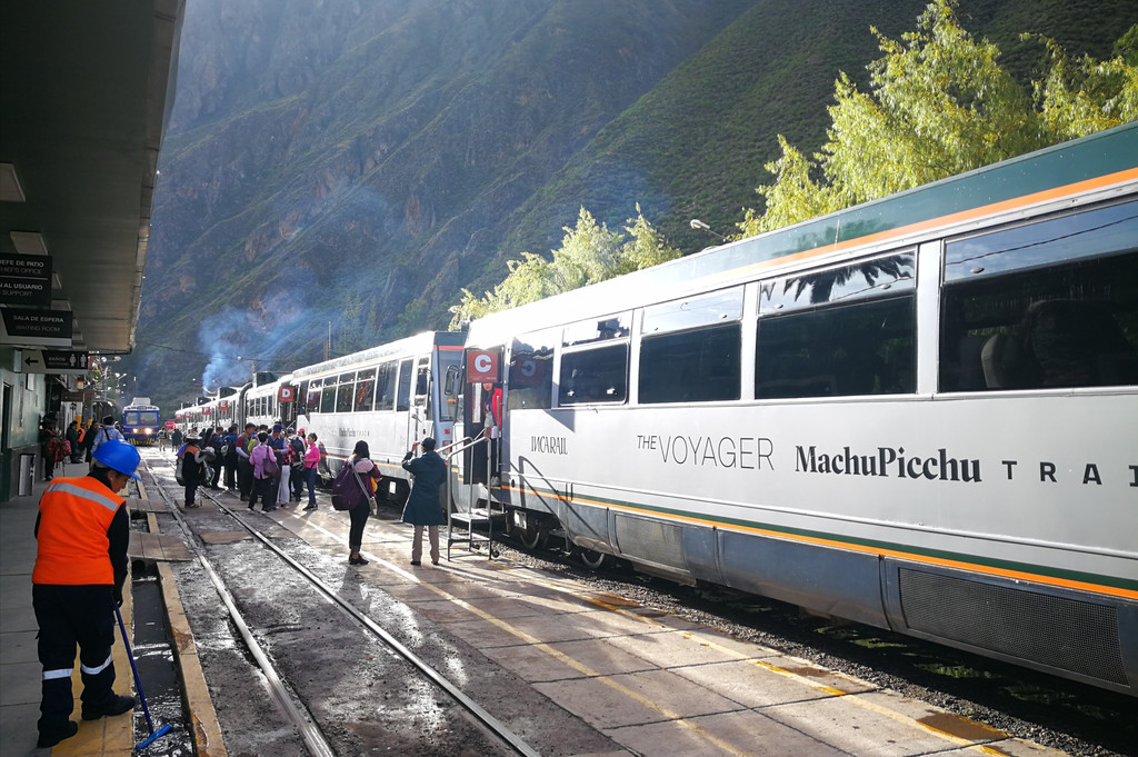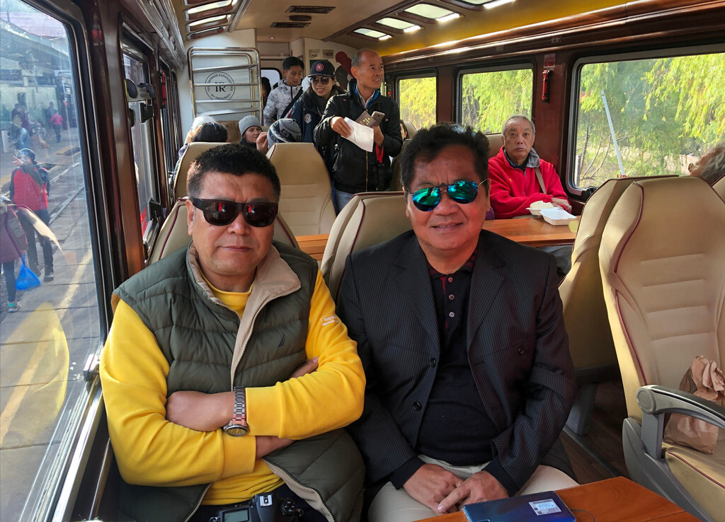 今天将前往马丘比丘遗址参观,早5点钟带着酒店给准备的盒餐,登上大巴前往“失落的印加城市”马丘比丘古城。从库斯科去马丘比丘,要先坐1个半小时的大巴到欧雁台镇,在从欧雁台镇坐火车到景区附近的温泉镇。火车车箱宽阔、豪华,棚顶装有超大玻璃窗,车坐坐上去很舒适,视野也非常开阔,车上提供免费咖啡和小零食。火车一直在山沟里、河流边穿行,经1个半小时的行驶,9点多钟到达马丘比丘山脚下的温泉镇。去景区要在这里坐景区巴士进入,巴士车次很多,坐满28人即开车,虽然排队,但很快就能上车。车行驶30分钟,到达景区门口。
