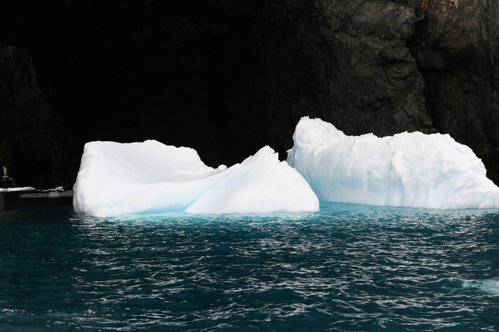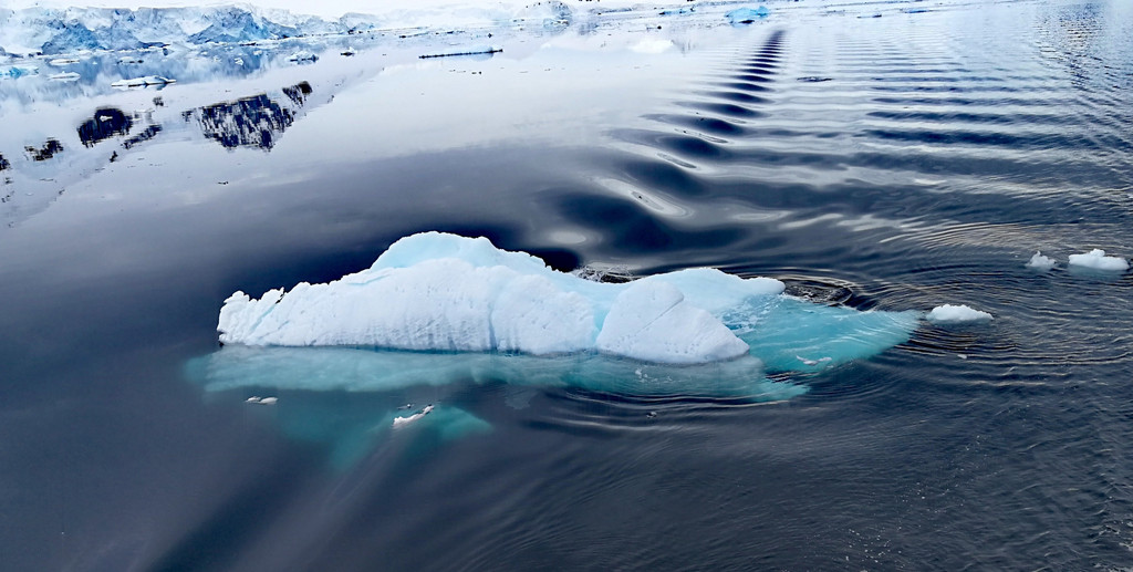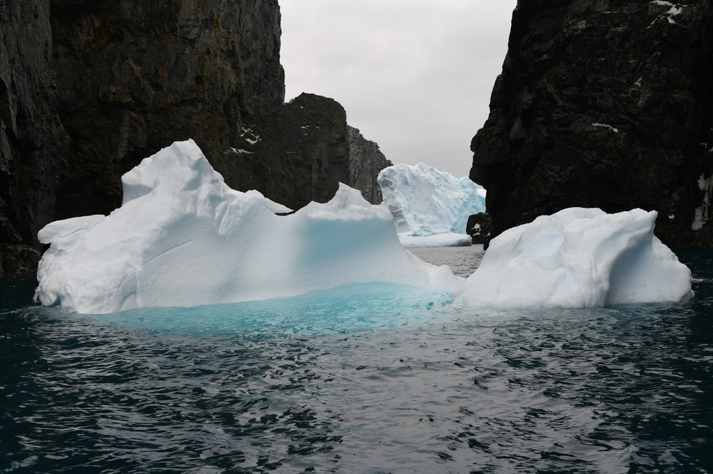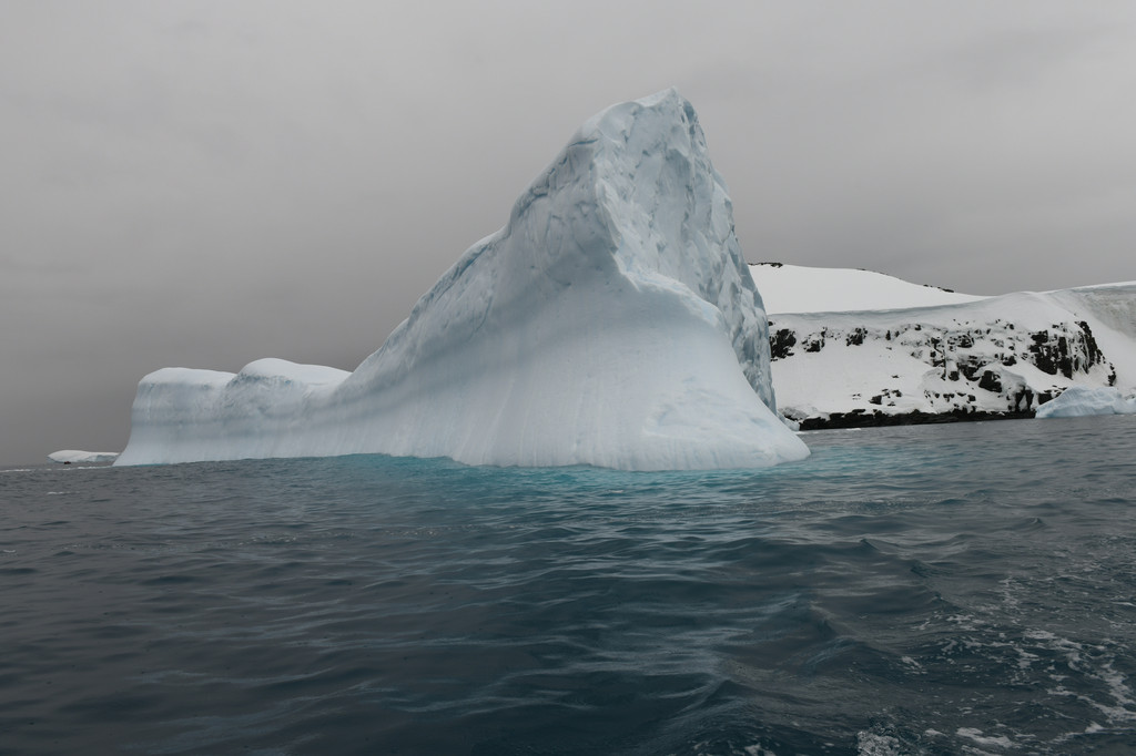 今天行程的安排,上午海上巡游,下午登陆海诺特岛。吃过早餐,大家早早来到登艇处排队,今天巡游的是南极半岛的恩伯特岛,这是一个断崖式的岛屿,有着陡峭高耸的山峰,由于没有登陆浅滩,只能乘坐冲锋艇巡游。登艇后围绕着恩伯特岛开始了1个多小时的巡游。岛屿周围有很多浮冰和冰山,风浪很大,冲锋艇穿过两个非常壮观的巨大溶洞,在波涛汹涌的狭窄水道中狂奔,这是一种非常刺激的体验。让人更加兴奋的是,观赏到了大量的蓝冰,据探险队员介绍,浮冰其实是没有颜色的,是在阳光散射后出现的蓝色效果。蓝冰在清彻的海水映衬下,晶莹剔透,白中带蓝,玉洁珠润,让人心醉。