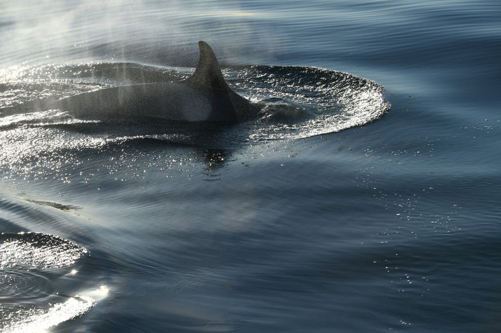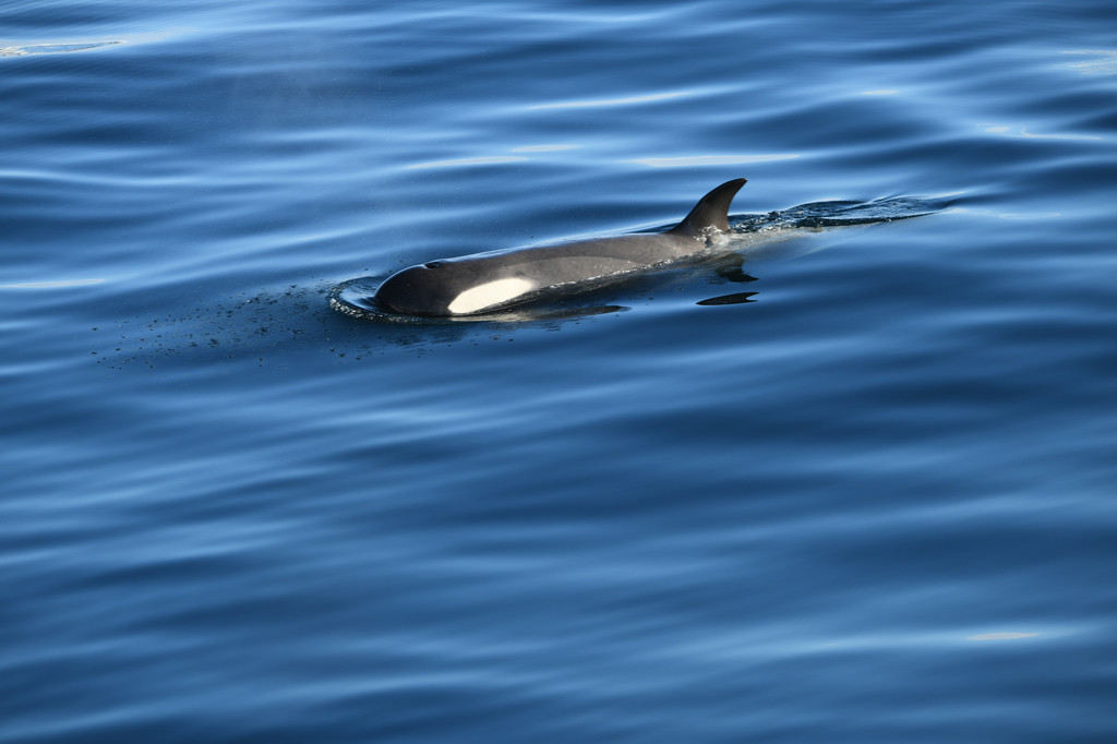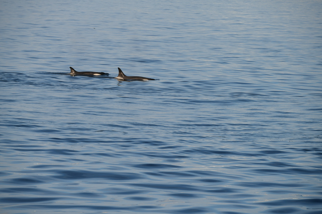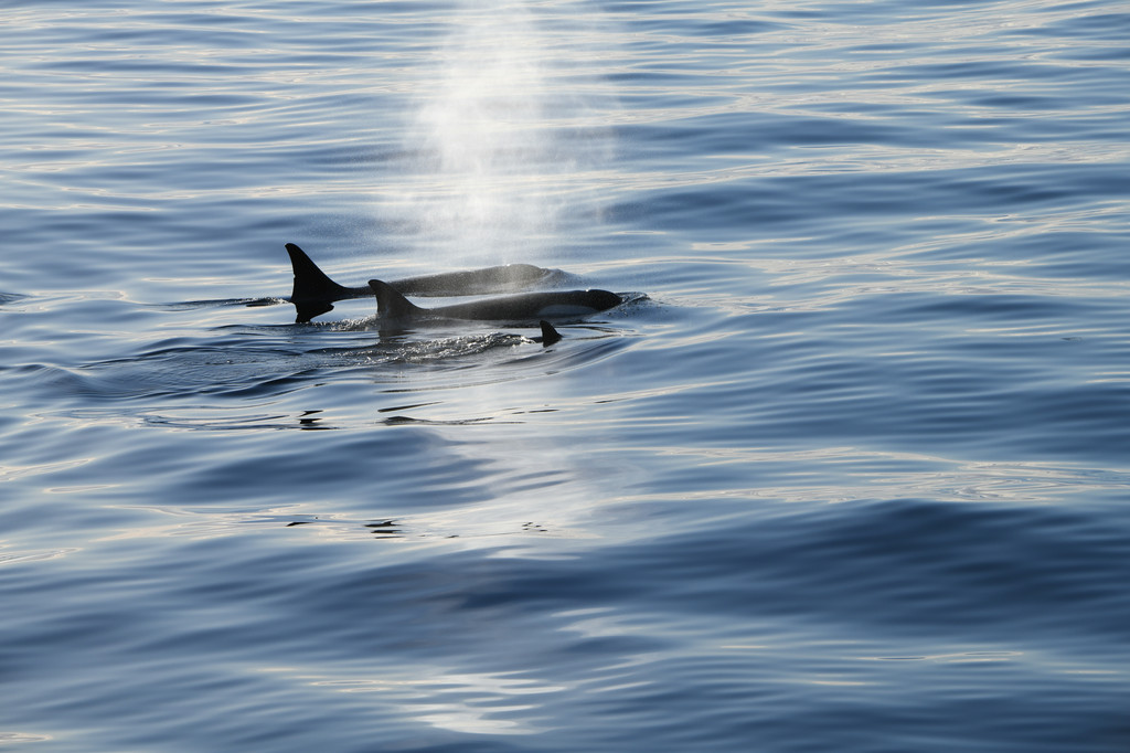 在该岛大家尽情玩了3个小时,回到船上,喝茶聊天,这时有人喊到,船的前方看到了鲸鱼。我拿起相机,飞快的跑到甲板上,几头鲸鱼在船的两侧畅游,时而穿出水面,时而掀起巨大的浪花,这是我们第一次看到如此多的鲸鱼,有虎鲸,有须鲸,鲸鱼伴随乌斯怀亚号畅游了10多分钟后向大海深处游去,渐渐淡出了人们的视野。