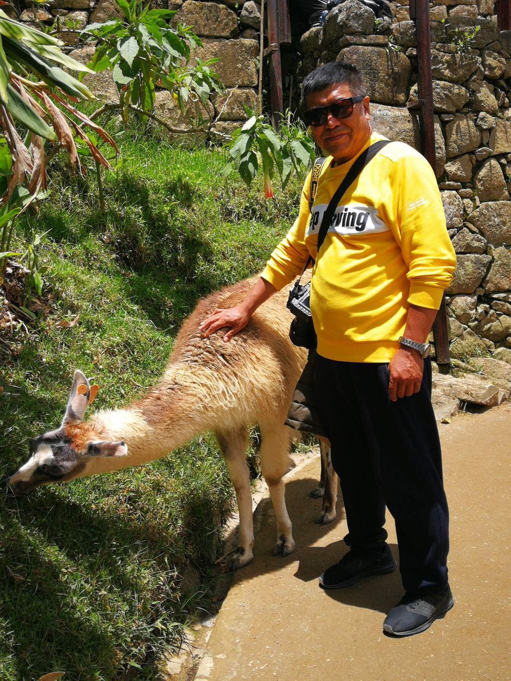 在马丘比丘有一种特殊的动物一羊驼,有白色和黄色两种颜色,身躯很大,不怕游人,羊驼的踪迹随处可见,为古遗址增添了不少活力。