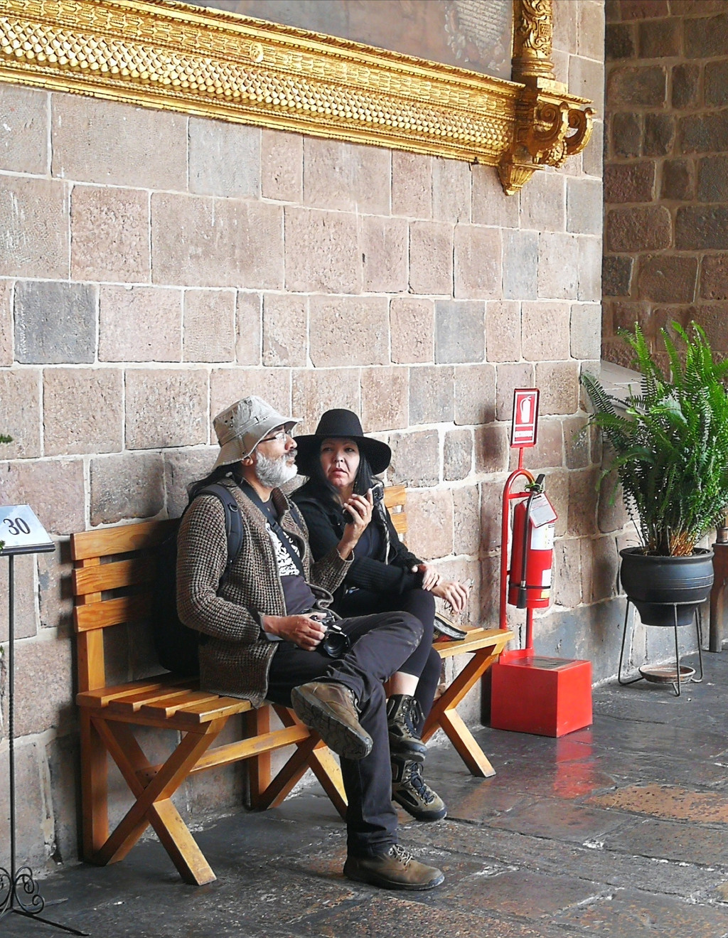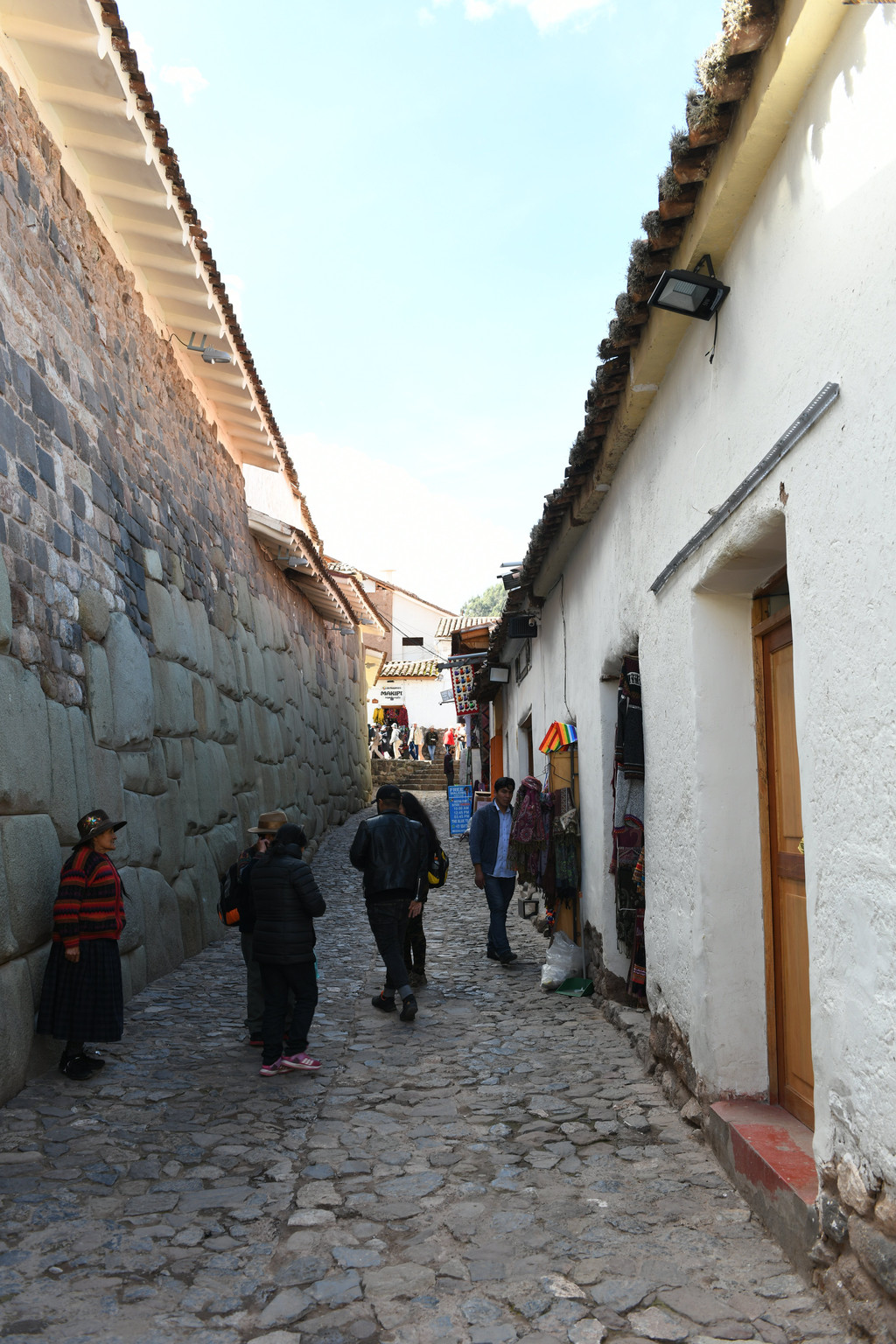 太阳神殿是我们参观的第一个景点,神殿是由最伟大的帝王帕恰库提统治鼎盛时期建造的,已有1000多年的历史,是印加文明的重要遗址。在当地语言中,意思是“金色的庭院"。西班牙人入侵后,把原来的主殿毁了,在此上面加盖了天主教堂。现在的神殿是一个带有围廊的二层西班牙式庭院,庭院中鲜花盛开,威严的钟楼给游人无尽的遐想。神殿最令人惊叹的是,西式建筑和印加遗址的巧妙结合,从四周围墙其断壁残垣中,游人能一瞥当时的辉煌。庭院的花园提供了良好的拍摄背景,太阳照射在回廊形成的斑斑阴影,显得错落有致。墙外的后花园面积很大,翠绿的草坪上摆放着很多巨石,多种鲜花盛开。