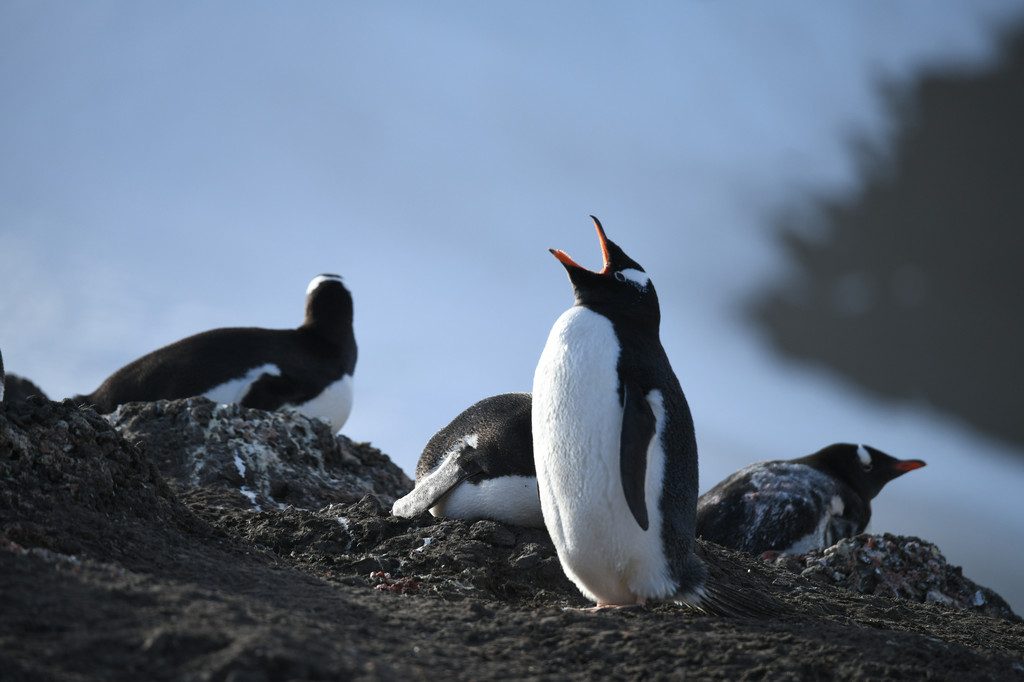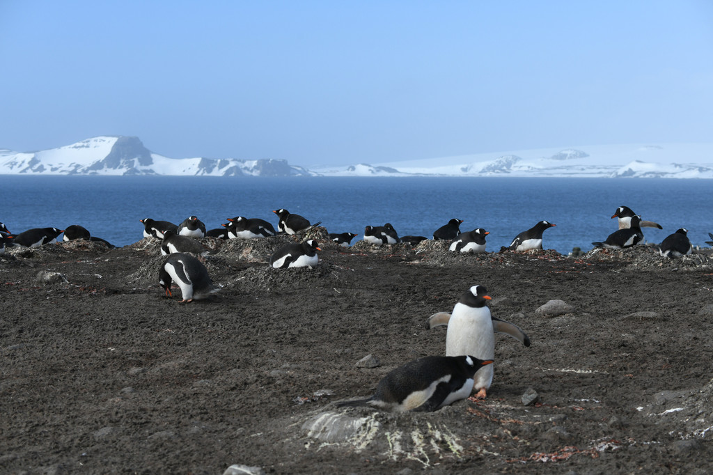 南极是企鹅的家,这个季节正是企鹅的繁殖期,大量的企鹅有的在产蛋,有的在搭建的巢穴里孵着自已的宝宝,企鹅先生站在旁边站岗放哨,保护着它的情侣,分工明确,各尽其责。当我们还沉醉在观赏之时,探险队长通知大家上艇返航,结束了一天的行程。