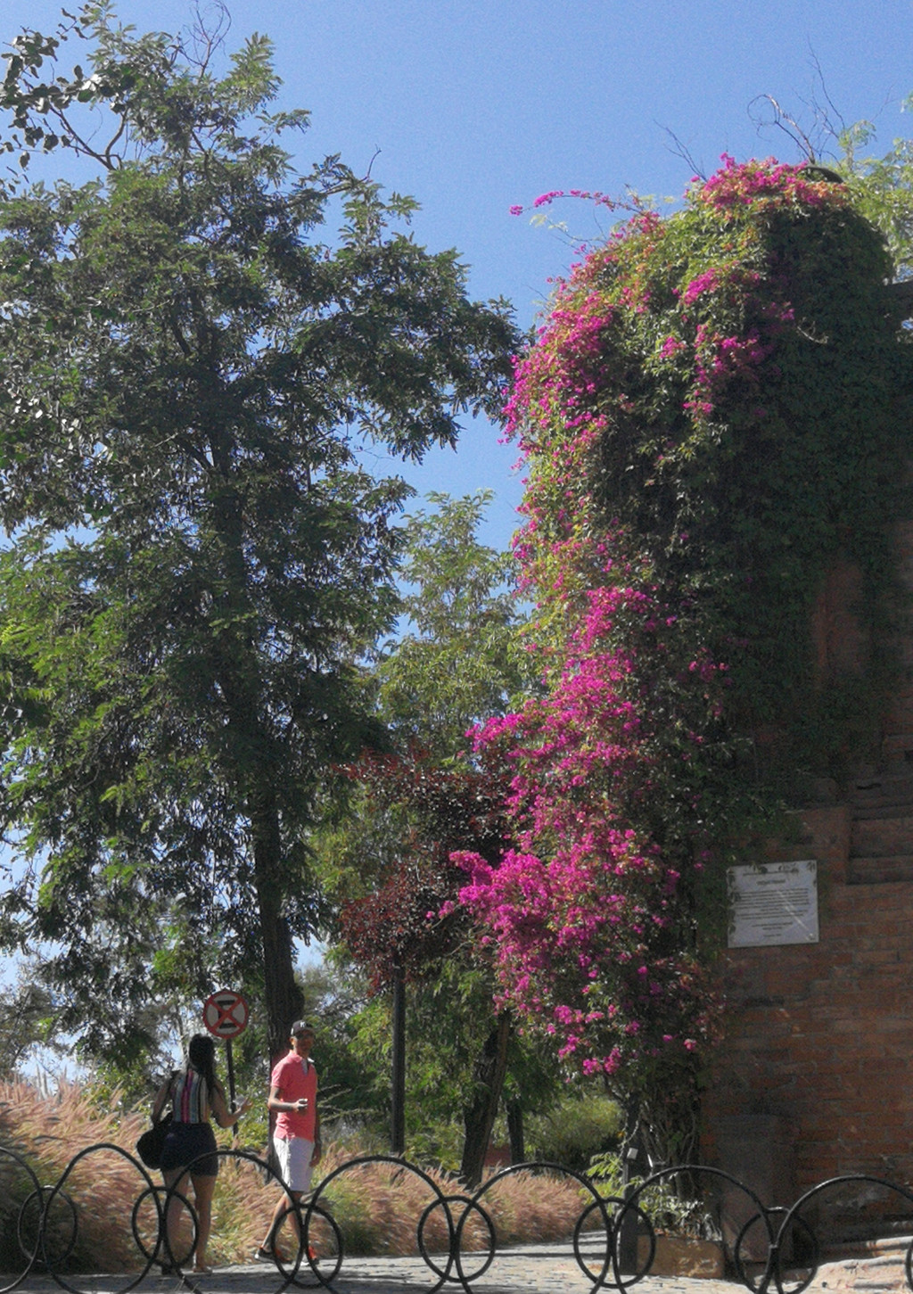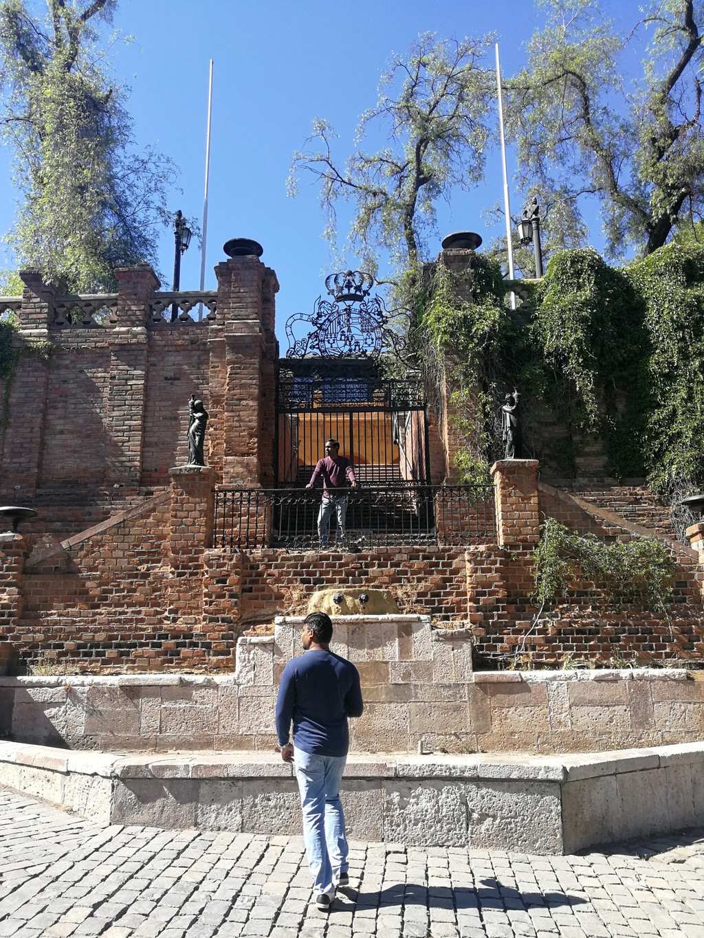 吃过早餐,我们首先来到了市中心的圣塔露西亚山,该山高230米,实际就是一个街心花园,是圣地亚哥的最高点。在山上有一座殖民时期建造的古堡,距今已有400多年。山上有很多热带植物,棕榈树居多,登上山顶,可以俯视整个城市,还能远望安第斯山脉。