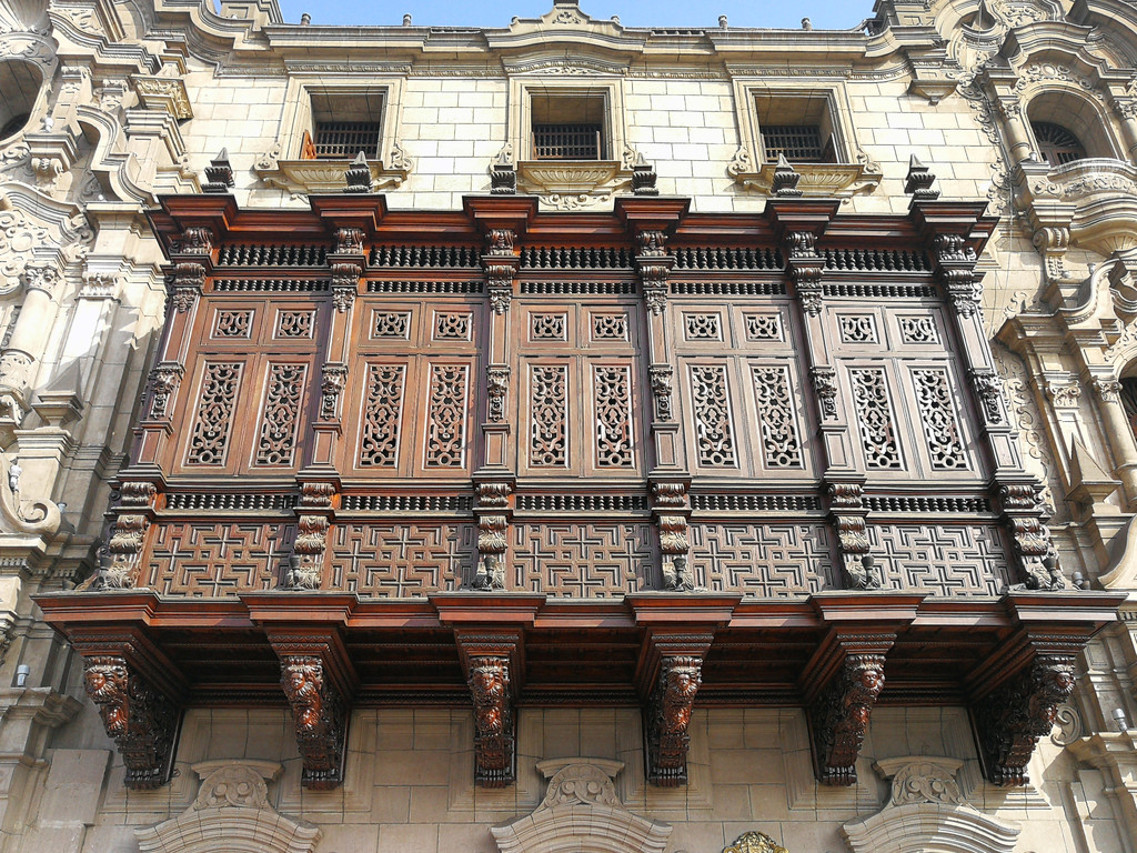 和大教堂相连的是主教宫,原是主教的寓所,现在是博物馆,展出了绘画、雕塑及主教用过的物品,主教宫二楼外墙有利马保存最好的摩尔式华丽木雕阳台,图案精美,雕功精湛,绝对是木雕精品中的精品。