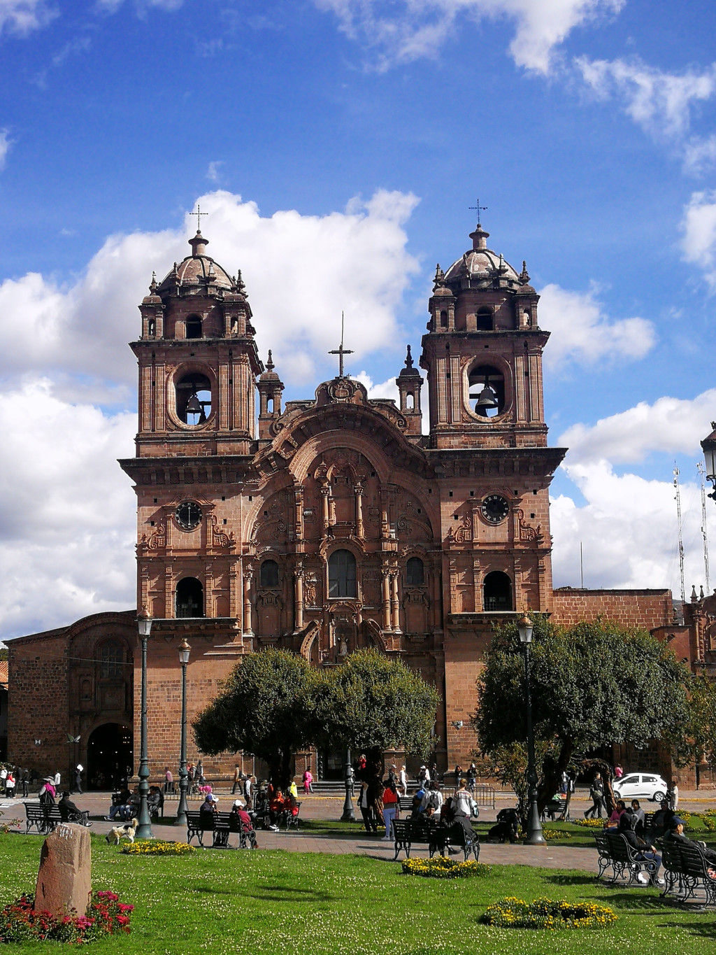距离神庙不远,就是库斯科市中心的武器广场。广场的南面,是印加人在太阳神庙的基础上,建造的拉孔帕尼亚教堂,现在是自然历史博物馆;广场东面是1560年始建的库斯科大教堂;广场的西面和北面是西班牙式的拱形长廊,很多商铺在此营业;站在周边的高处遥望库斯科城,一坡红顶,满山壮观,碎石小路,路途遥远,置身这个城市,就是置身于千年前的历史回忆中。