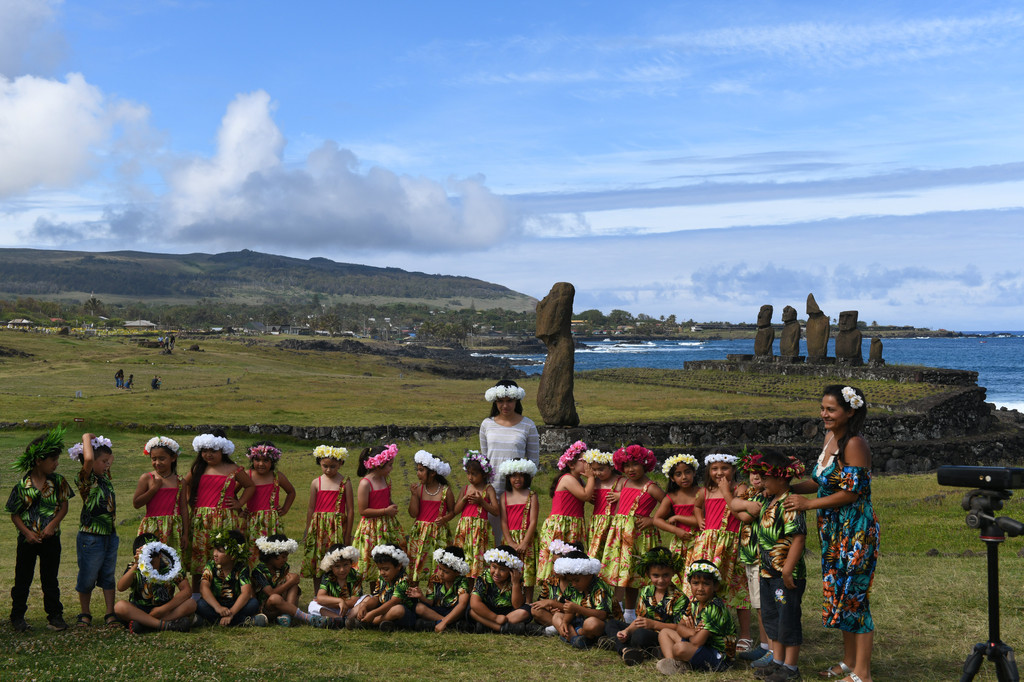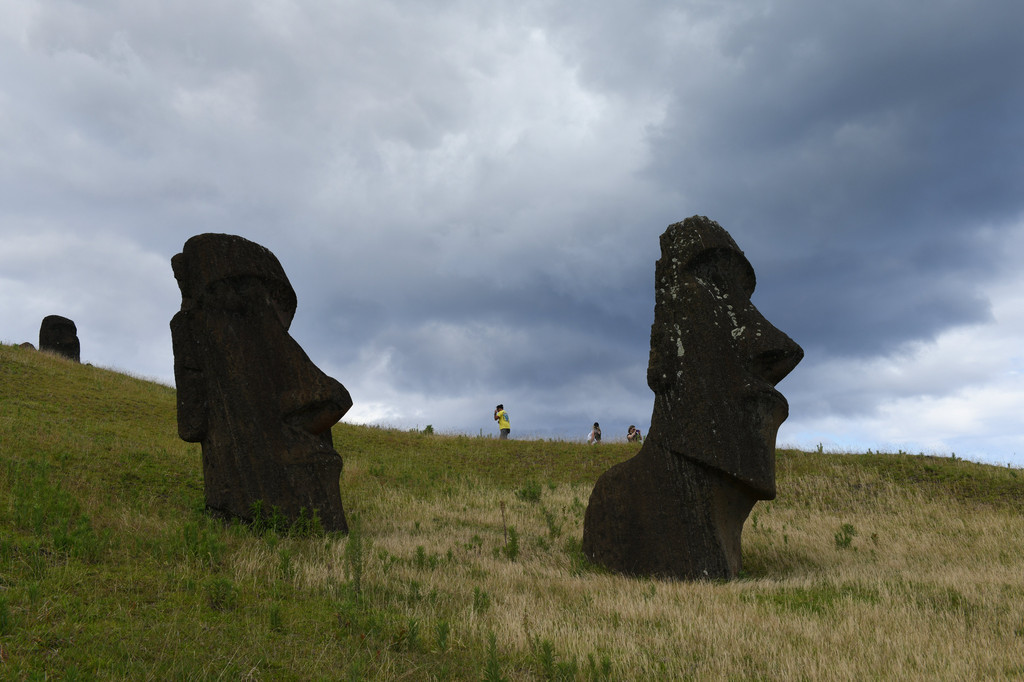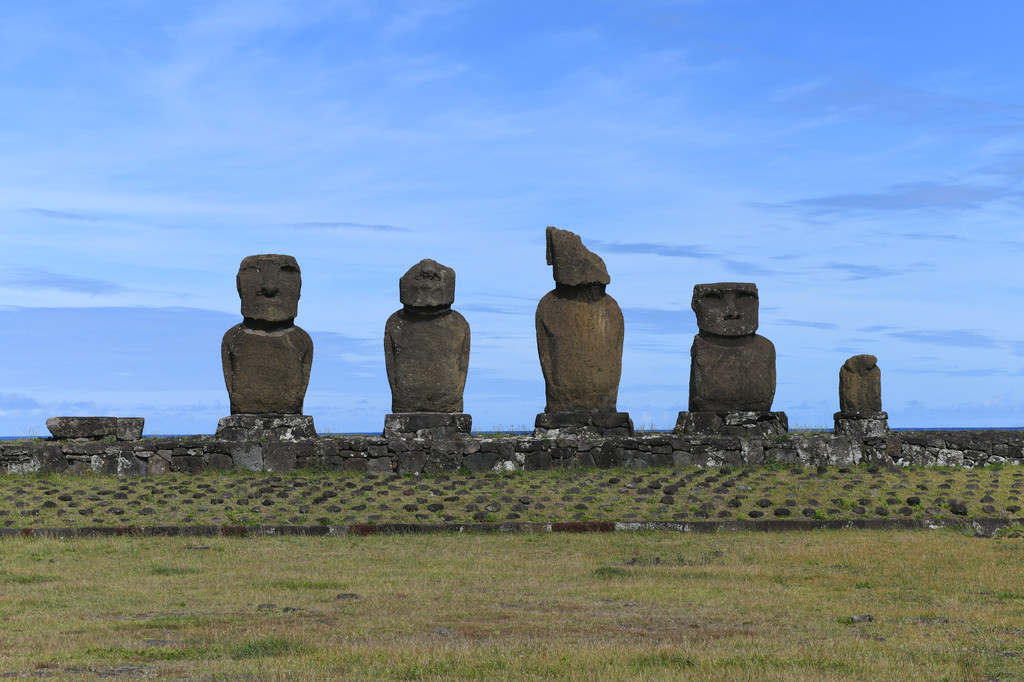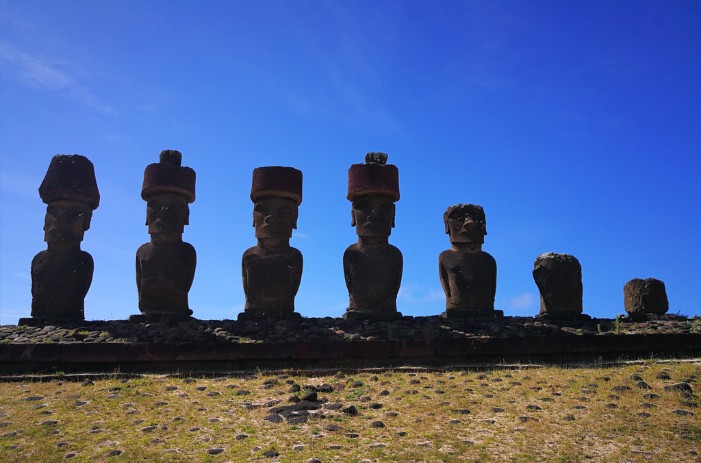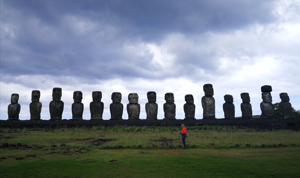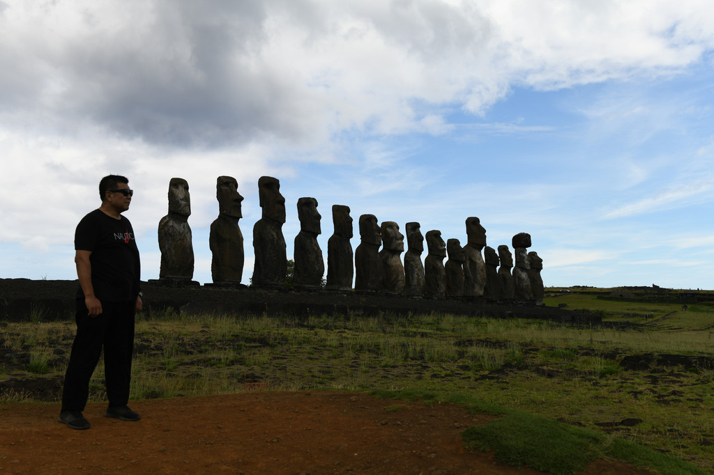 1个多小时后,我们来到了全岛最富魅力的湖汤加里基景区。这里应该说是复活节岛上地标性的景点,也是岛上最大的石像群。15个巨大的摩艾在海边一字排开势,气势磅薄,神态各异,其中最大的重达86吨,颇为壮观。