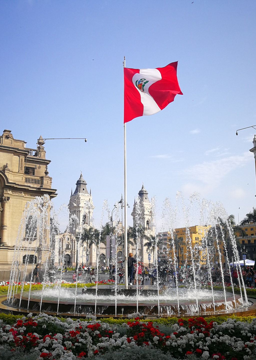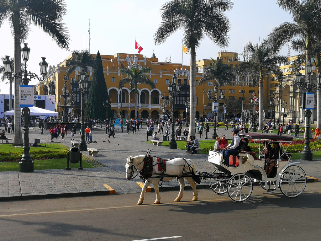 早起赶往库斯科机场,乘坐LA2012航班,飞回首都利马,继续利马市内的参观旅游。第一站来到了利马最著名的景点,位于老城区中心的武器广场。武器广场是利马的发祥地和文化中心,是一个非常美丽的大广场,高大的椰子树分布在广场四周,草地中繁花似锦,复古马车載着游人巡游,四周都是有历史故事的著名建筑,如总统府、大教堂、主教宫、利马市政大厦和著名的圣弗朗西斯科修道院。