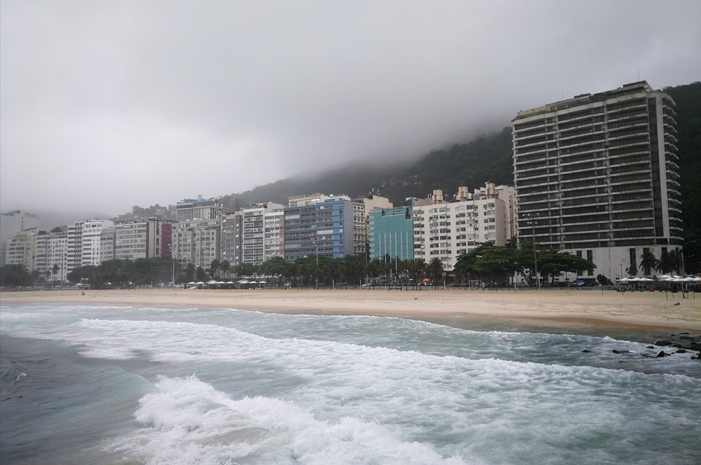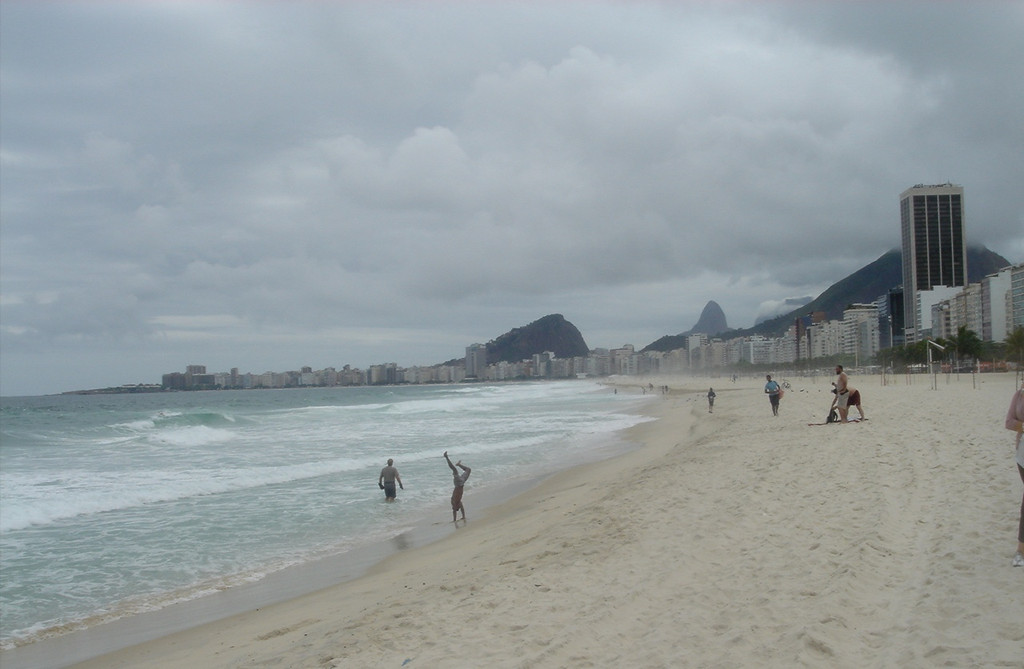 科帕卡巴纳海滩是世界著名海滩之一,位于里约的黄金地段,海岸线长达4.5公里,海水湛兰,浪花雪白,沙滩松软,非常的迷人。海岸大道旁,宾馆、餐厅很多,风浪很大,天气不好,极少看到有人下海游泳。