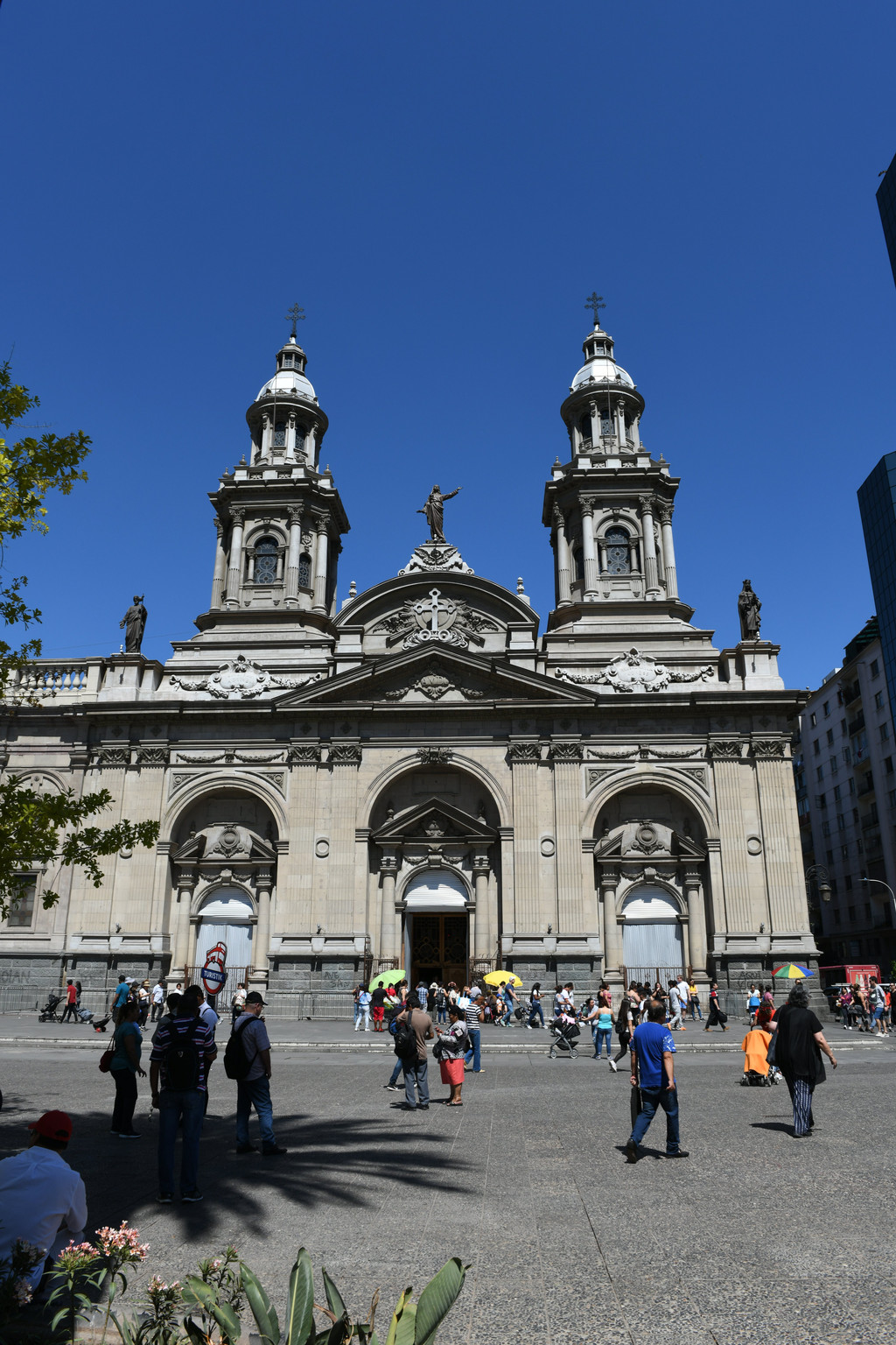 接下来我们来到海军武器广场参观。该广场位于圣地亚哥市中心,这里是老城区,广场中央长有多棵枝繁叶茂的参天大树,周围西班牙殖民时期的古建筑很多,如市政厅、国家历史博物馆、中央邮局、大教堂、大主教宫等,仿佛置身于中世纪时代。