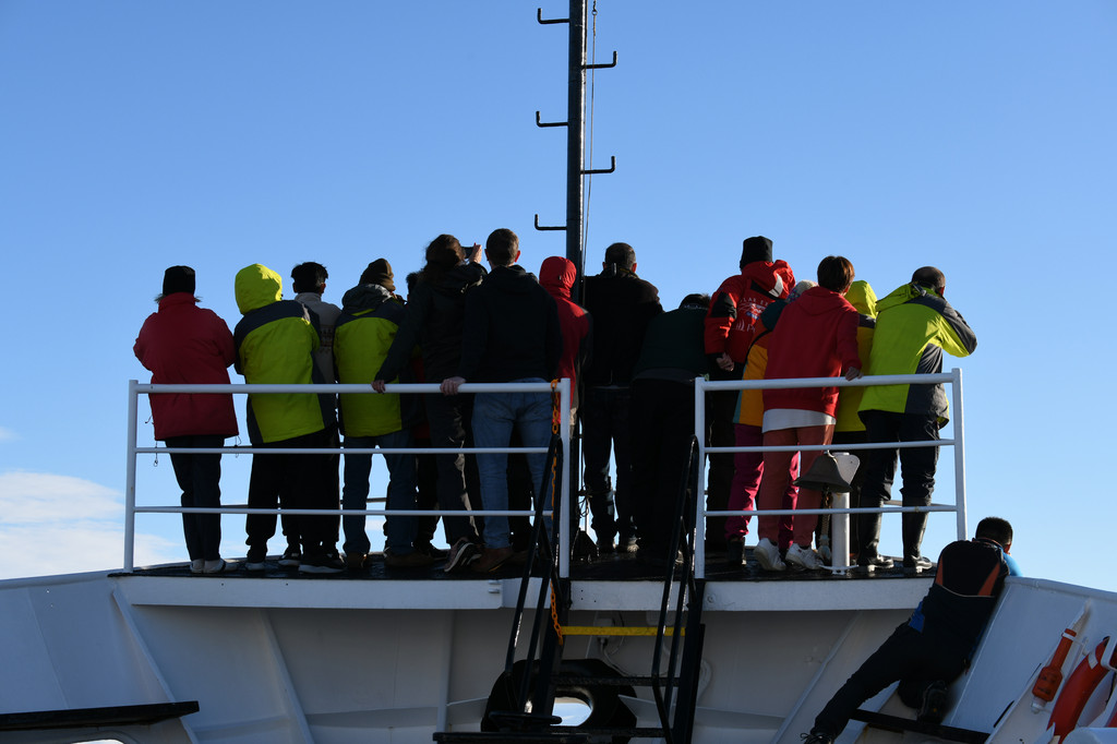 乌斯杯亚号最初为美国机构诺阿的勘测船,经过改造,最终成为能承载90位乘客的游船,这次90人中,有57名中国游客,有33名外国游客。晚6时许,乌斯怀亚号迎风展浪,破冰起航,开启了为期10天的南极探险之旅。