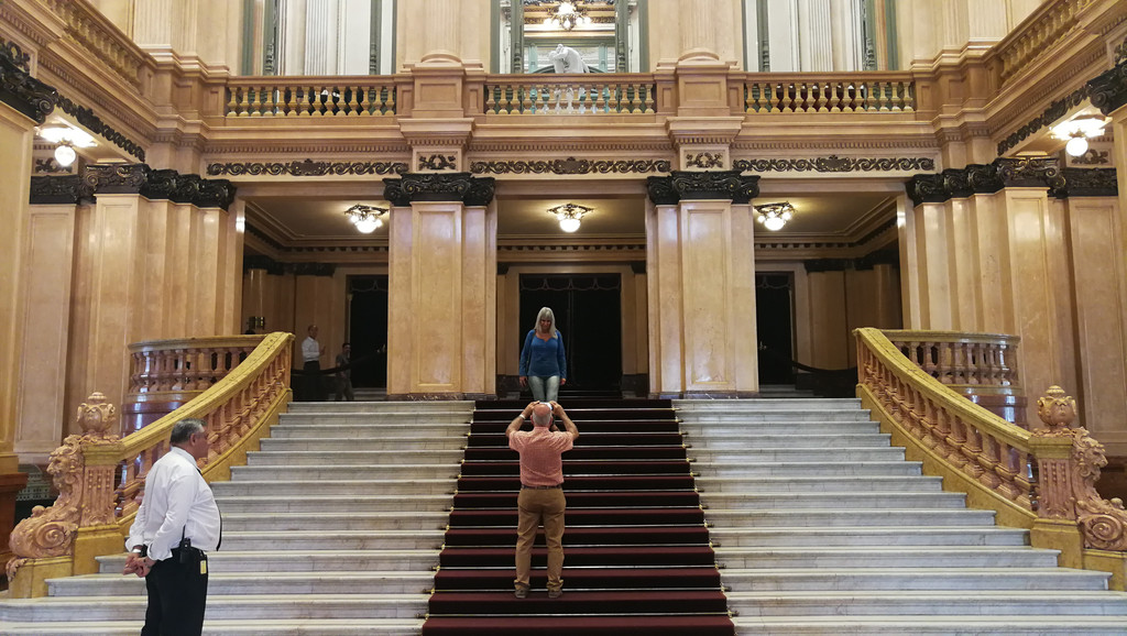 下午在市内游览,五月广场是阿根廷的象征,见证了阿根廷共和国的独立和城市发展;7月9日大道得名于阿根廷的独立日,大道宽110米;科隆歌剧院坐落于大道的街旁,是典型的欧洲文艺复兴建筑风格,这座1857年建成的歌剧院,和纽约大都会歌剧院、意大利斯卡拉歌剧院,并称为世界三大歌剧院。一进歌剧院大厅,就可以看到富丽堂皇的彩色大理石阶梯,二楼走廊的大理石立柱和雕塑,和豪华、一字排开的水晶吊灯,让人感受到艺术殿堂的贵族气质,可以说是一座欧洲血统的高雅艺术殿堂,解说员在做讲解介绍时,无不充满着对歌剧院的崇拜和自豪。