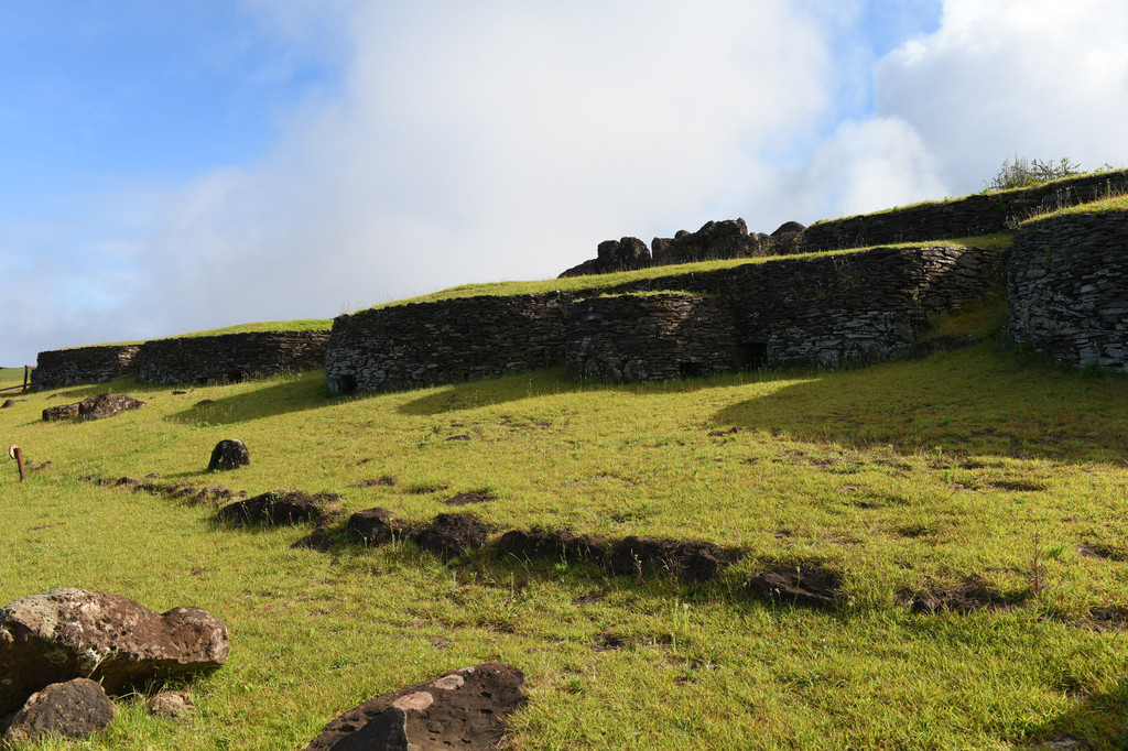 在火山口的西南侧,是鸟人村遗址。这里曾经是岛上居民曾经居住的地方,现已发现53所半地下石屋,出口在外,石屋开凿于山体之内,防寒遮雨。这里还是古代拉帕努伊人举行“铁人三项"祭祀活动的地方,虽然没有一尊摩艾,但却是最有历史价值的景点。