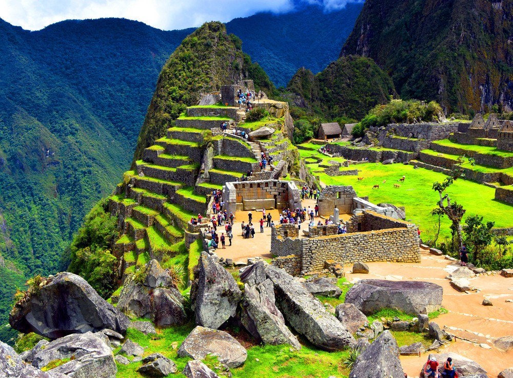 走进景区里,顺着山路漫游前行,俯瞰马丘比丘城内有神庙、王宫、堡垒、民宅、街道、广场等建筑,它们由纵横其间的台阶连接起来,有的石阶多达160层。并且,这些建筑全部用大块花岗石砌成,石块之间结合紧密,不用任何黏合材料,全是石匠们使用简单工具拼接垒筑而成。