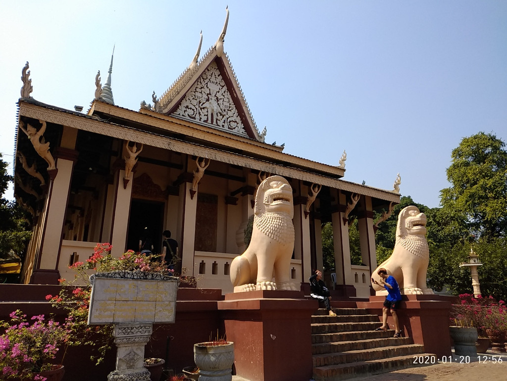 塔尔寺就在不远处,也是金边一主要景点,去哪里看看吧。柬埔寨人信奉的教也是佛教,只是与汉人信奉的佛教有所不同,这里的寺庙也是烧香,跪拜,供奉,捐钱等等。不知道为何,庙有汉字对联,汉字挂历等等。