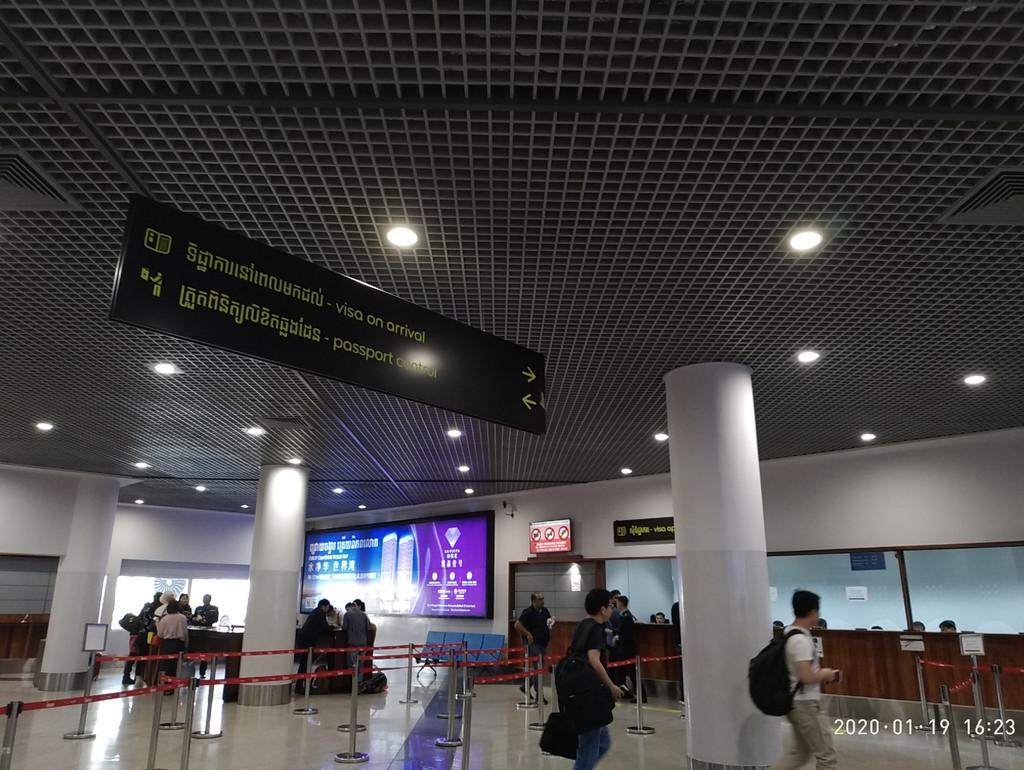 柬埔寨的金边国际机场航站楼并不大,航站楼内不少是中国公司的广告。出关后一7.27的高汇率换了一百民币至美元十四元。机场至市区的酒店tutu车费从10美元砍价砍到5美元。tutu司机并不知道酒店的具体位置就拉山我们跑,买来的电话卡一时又不能用,地图打不开,司机转了半个小时才问到我的酒店。