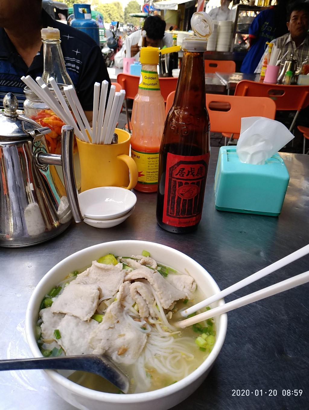 换钱后找早餐,看得许多当地人吃的摊点,凑近看,早餐与云南一带的水粉很相似,一碗九千瑞尔,相当民币十五元,味道不错,而且猪瘦肉奇多,物有所值,就是给我两吃太咸了些,都是因为家里妻舍不得放盐的缘故。