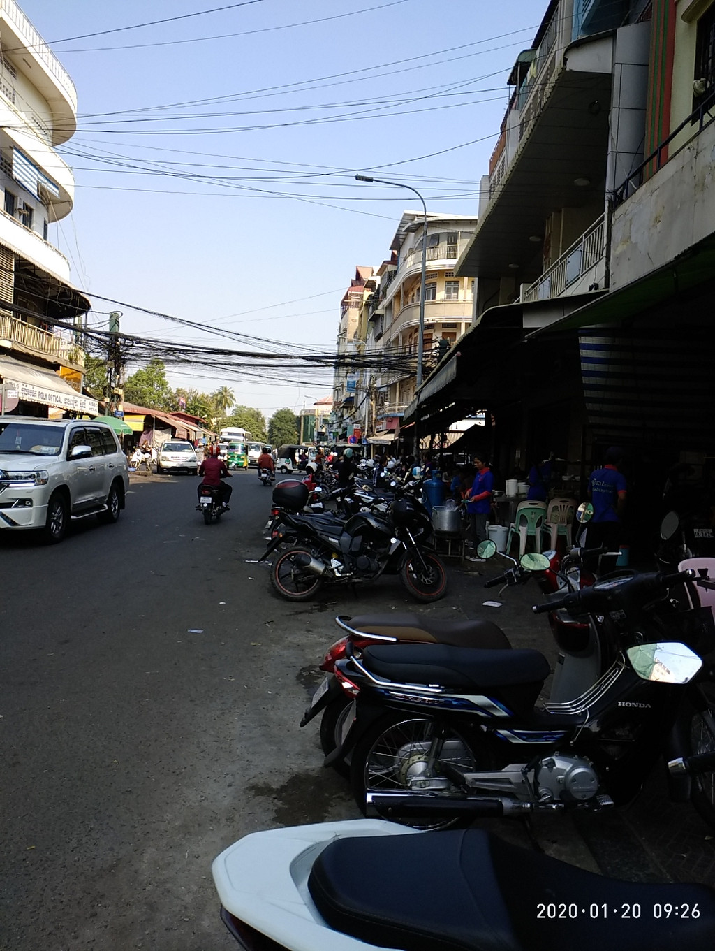 一边办事一边逛街,街上人流如织,汽车摩托车如水如龙,不知道是因为春节将至的缘故还是我们所处的位置就是闹区,场面热闹非凡。出国前在淘宝上买了电话卡,说好有200G流量的,可是到柬埔寨怎么也不能用,应该不是我设置好问题,联系国内的客户却得不到服务,旅行结束后找卖家算账,现在只能在当地再买一张。