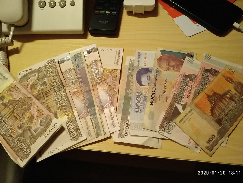下午顺利登上飞机,还在机上睡了一觉。醒来发现在家准备的美元竟然忘记带来了,柬埔寨流通柬币和美元,两者都没有怎办,啊,只能落地去换啰!