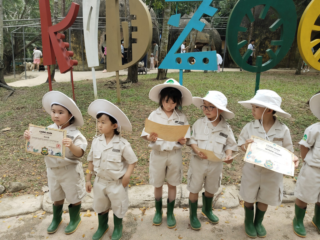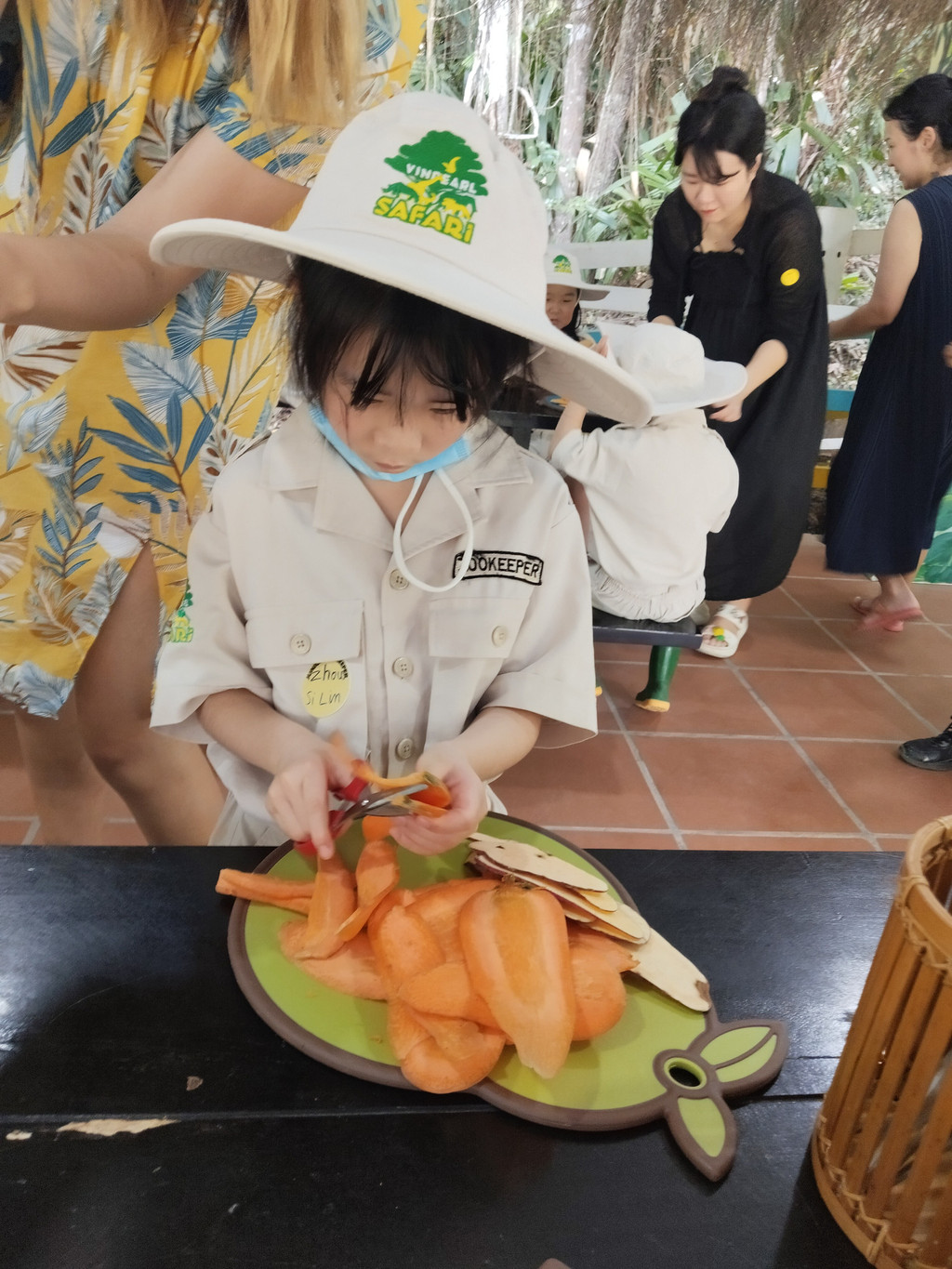 整个动物园的特色是“小小饲养员”,可以现场买票也可以线上预约,现场买票40万一个孩子,但是必须6岁以上,有个5岁的被拒绝了。但是线上预约我们一起的有个2岁多的。各个国家的小孩子一起,先换上饲养员的服装,老师讲解各种动物和动物吃什么,全英文,然后让孩子们给动物们准备食物,还有活的虫子,接着去喂羊,兔子,狐獴这些小动物,结束后给他们戴蛇和蜥蜴拍照,以前看到过有小老虎,估计小老虎长大了。课程10点半开始,12点结束。