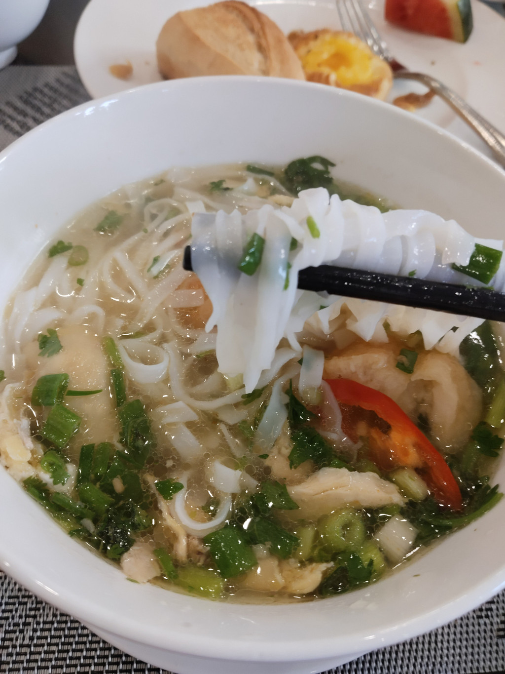 越南最出名的当然是河粉了,每个酒店都有自己特色的河粉,有鸡肉河粉,牛肉河粉等,配上越南独有的调味料和辣椒酱,再加上鱼露,自己调。我们没有特意去找,随缘碰到的都挺好吃。