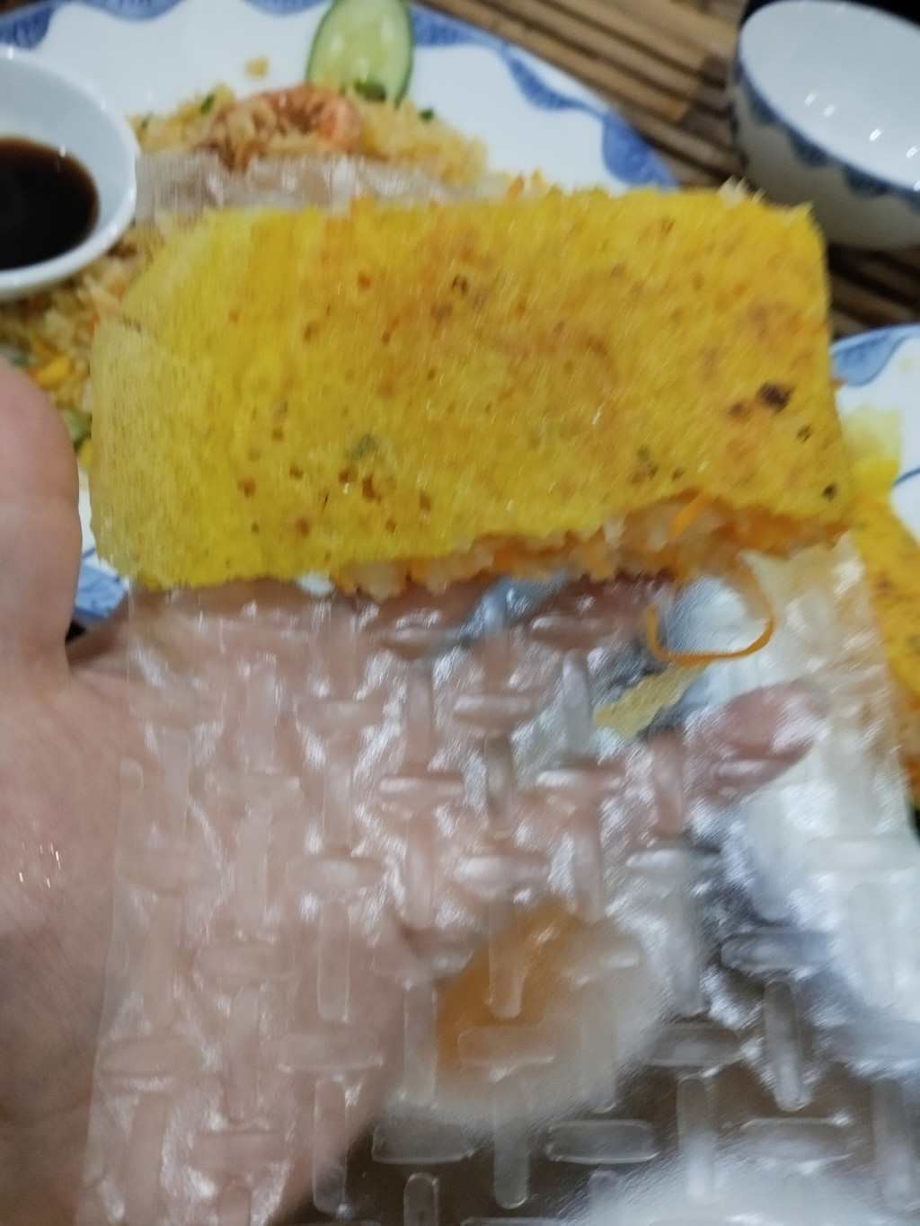 还吃了一种自己卷的饼,卷的皮以为是塑料,结果是可以吃的糯米做的。