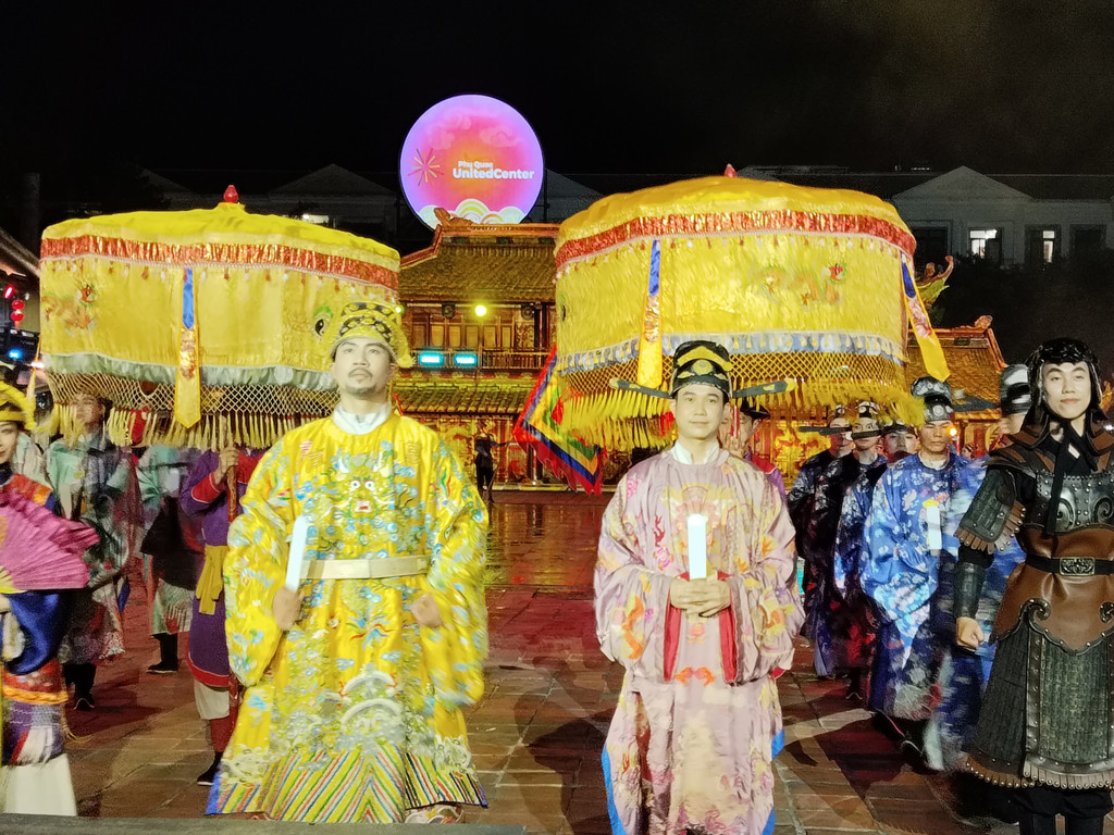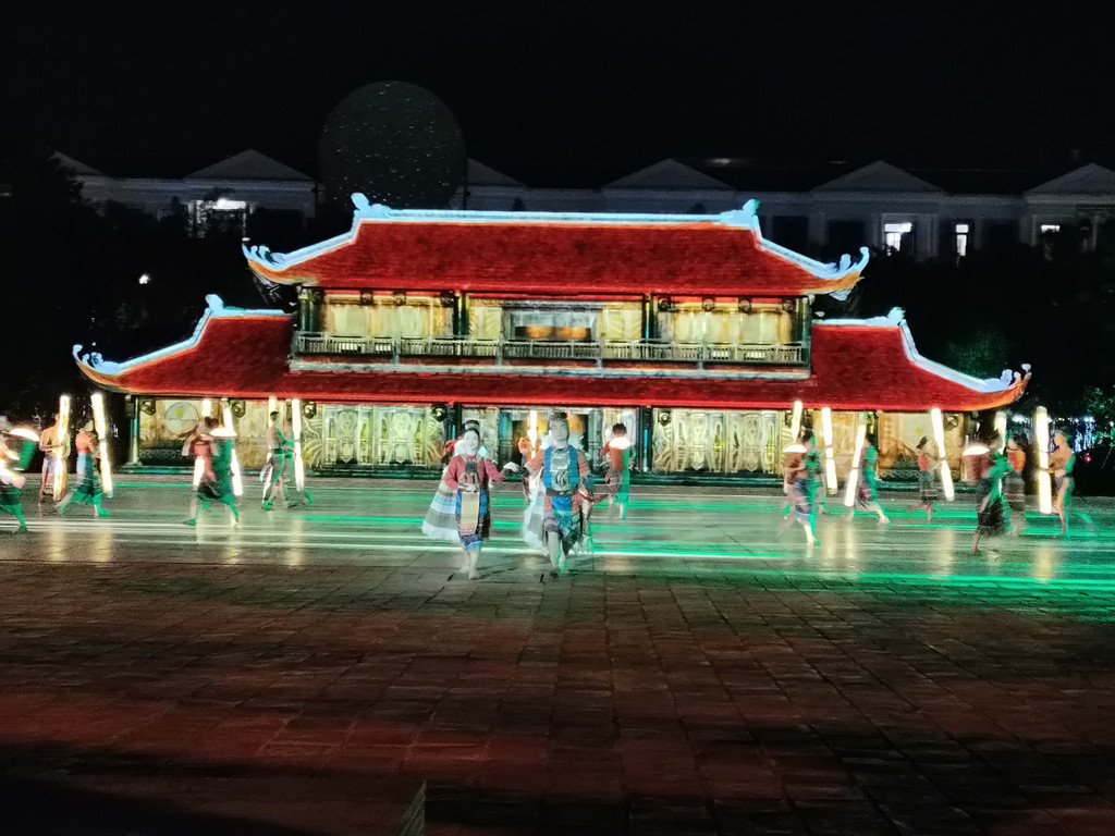 越南精华表演晚上8点半开始,在竹楼旁边,像一个文俗村,下午开始里面有很多演出,都是免费的,晚上开始就不能进了,特别推荐,场景宏大,还有很多高科技,可以了解越南文化和越南古代的文化。