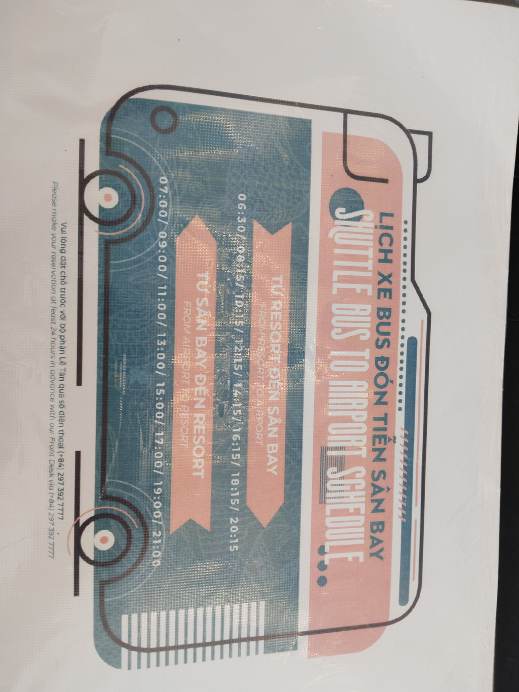 南岛订的是premier residences 雅高翡翠湾公寓,据说是南部酒店群最有性价比的酒店,酒店有shuttle bus 往返机场,但是要看看自己的订单是不是含机场接机,我问过去我的没有机场接机,我们从中部金刚超市附近打车过去35万越南盾,其实20分钟不到就到了。酒店可以坐shuttle bus 送机,有时刻表,需要提前24小时预订。见图1