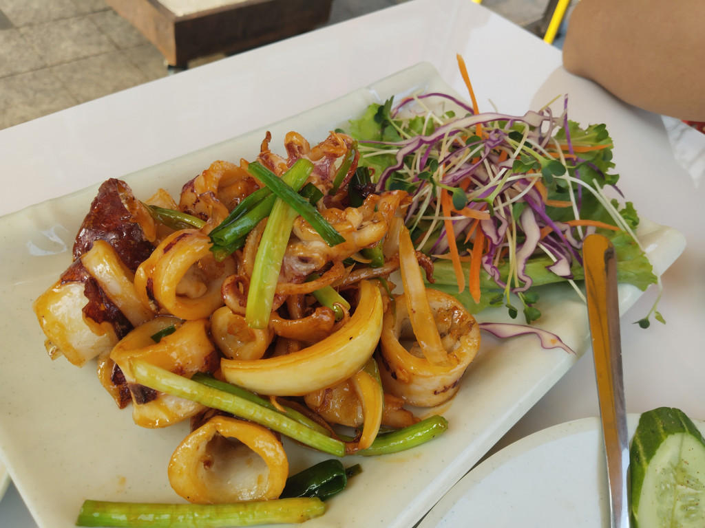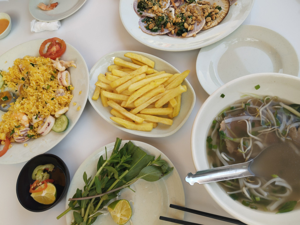 对于越南的海鲜不要抱有希望,好好的海鲜他们也不会做,我们吃过一次海胆,里面倒上花生碎,都没有吃出来海胆的味道。鱿鱼外面还裹上甜酱,味道一言难尽。整体来说,炒饭味道不错。